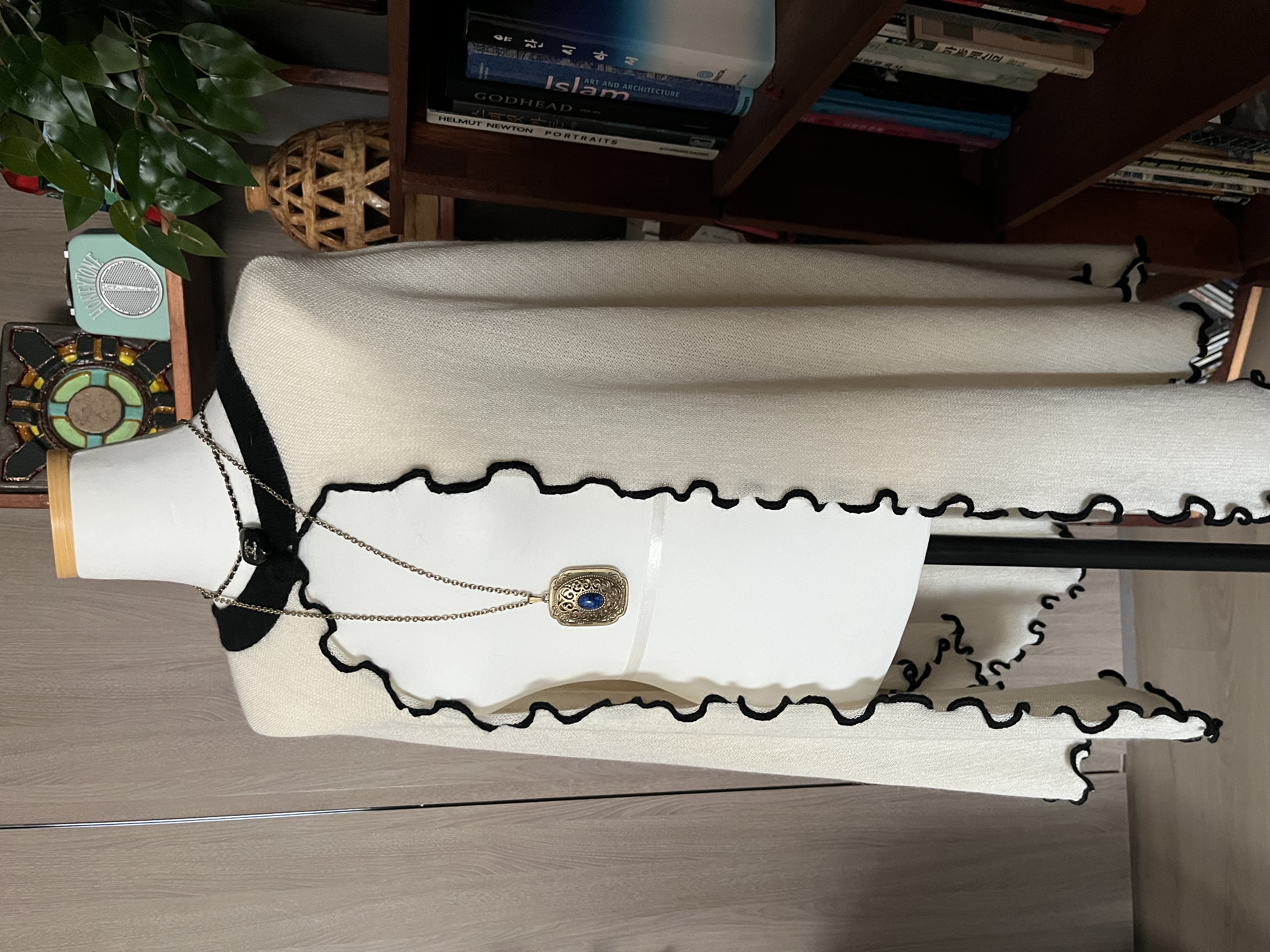 따땃함이 묻어나오는 알파카소재의 봄 가을 걸치기 좋은 판초죠? 구블구블한 레이스라인이 귀엽습니다 이런 판초는 처음 보실듯한데요 저도첫눈에 맘에 들었던 옷입니다 레이스트릴을 좋아하지 않음에도요 이런옷이 RARE함을 보여줍니다 판쵸는 점 낙낙하게 입어주면 멋스럽게 보일거예요 55 SIZE 컨디션 새것처럼 매우 좋습니다 made in nepal.