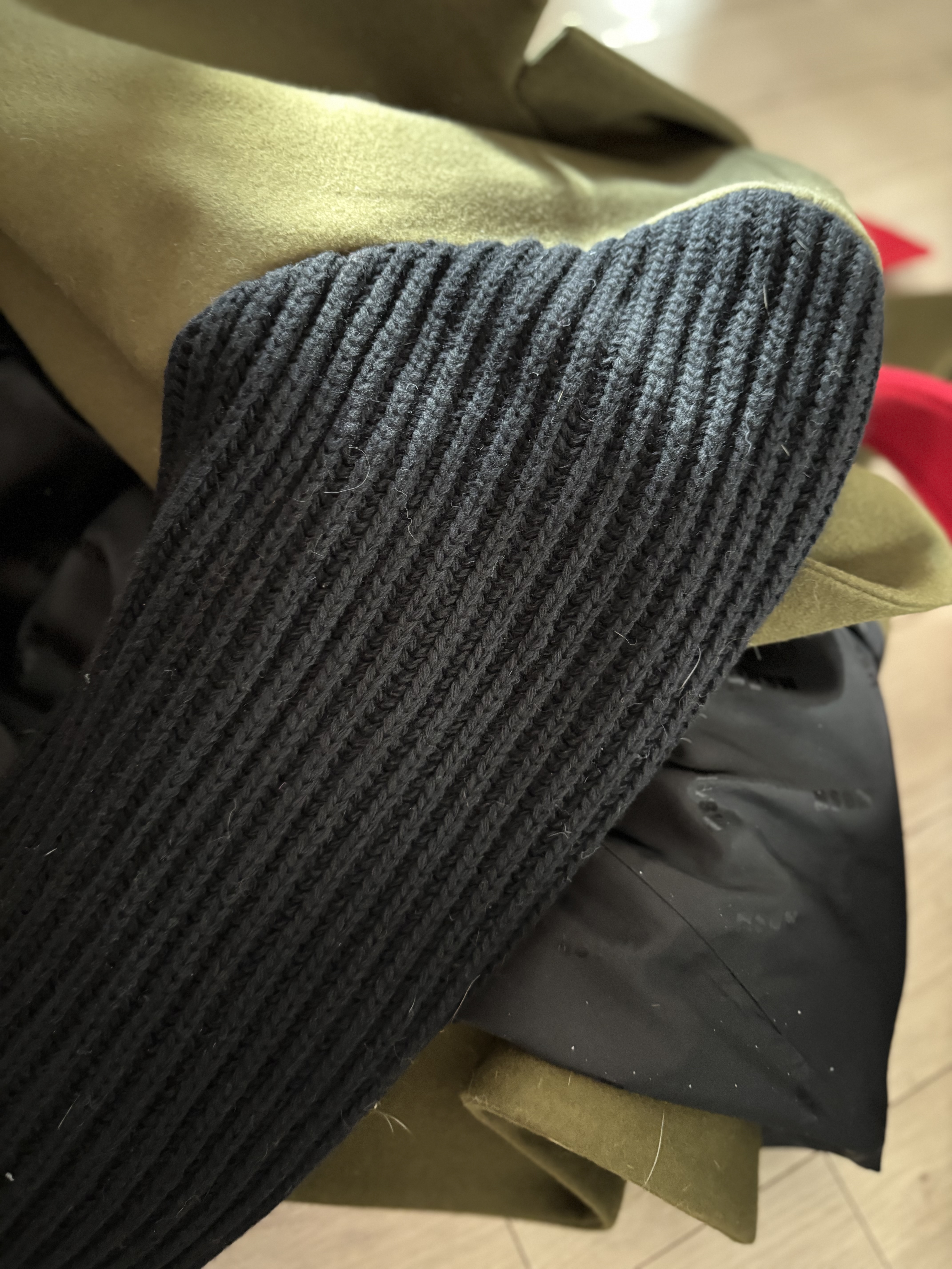 전 군복이 참 멋지다고 생각해서 유일하게 몸에 핏되는 옷을입는건 군복같은 코트예요 트렌치코트도 군인들이 입었던 옷으로 지금은 너도나도 즐겨입는 옷이 되었죠 카키색으로 된 몸통부분의 느낌은 빳빳? 하고 단단하고 두툼합니다 -군대담요 생각이나네 ㅎㅎ-  그래서 팔 부분은 여성스러움을 살리기위해 니트로 만들었고요 와 빨간 허리끈이 당연 멋스럽고세련된  포인트가 되고 있어요 전 전생이 장군의 딸이었나봐요 군대얘기도 재밌고 tv에서 군에간 연예인들이 나오는 프로그램을 재밌게 봤어요 또한 군복같은 옷을 좋아하니 말예요 전 정말 루즈하고 오버사이즈의 의상을 입거든요? 몸에 핏 되고 유니폼같은 옷을 입는건 오직 군복같이 각이 선 코트를 좋아해요 셀린 제품으로도 이러한 코트가 있는데 잘 입었어요 나중에 선뵈일께요 가단 53cm, 어깨 45cm, 총장 126cm - 길다고 우려하지않으셔도 되요 허리끈으로 묶으면 길이가 좀 짧아질것이고 힐 부츠를 신으셔야죠 굽없는 플랫슈즈를 신으려 하는건 아니시죠?  Wool 80%, poliammide 20%  이딸랴 사이즈 표기 42  입니다