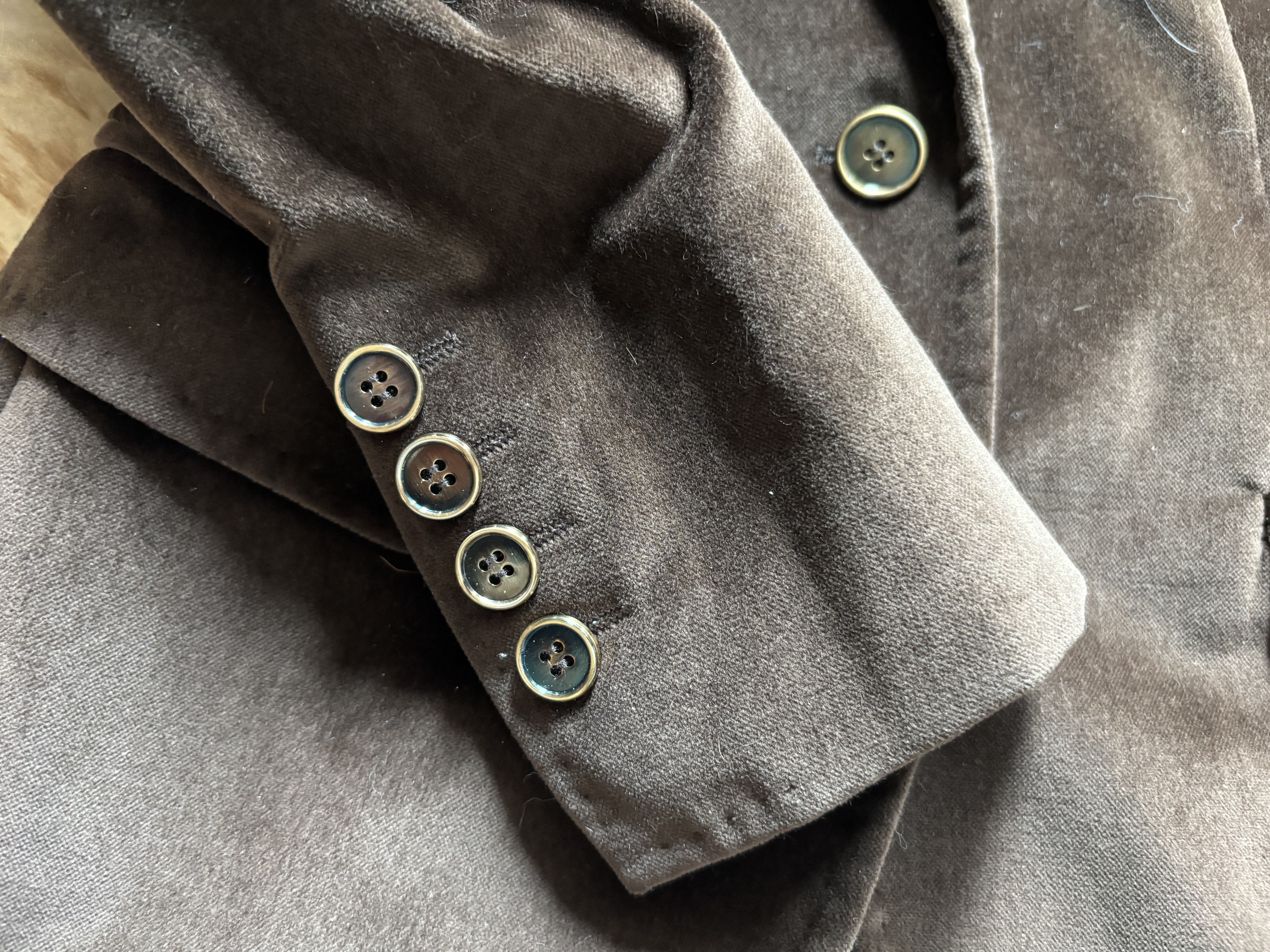 가단 43cm, 허단 37cm, 소매 63cm,  어깨 37 cm , 총장63cm, 55사이즈의 마네킨에 꼬옥 낍니다 44 분들께 권해요! Mint condition!!! 지금 날씨에 딱 인 velvet jacket 스탠다드하고 심플한  유행따위란 없는 옷 !