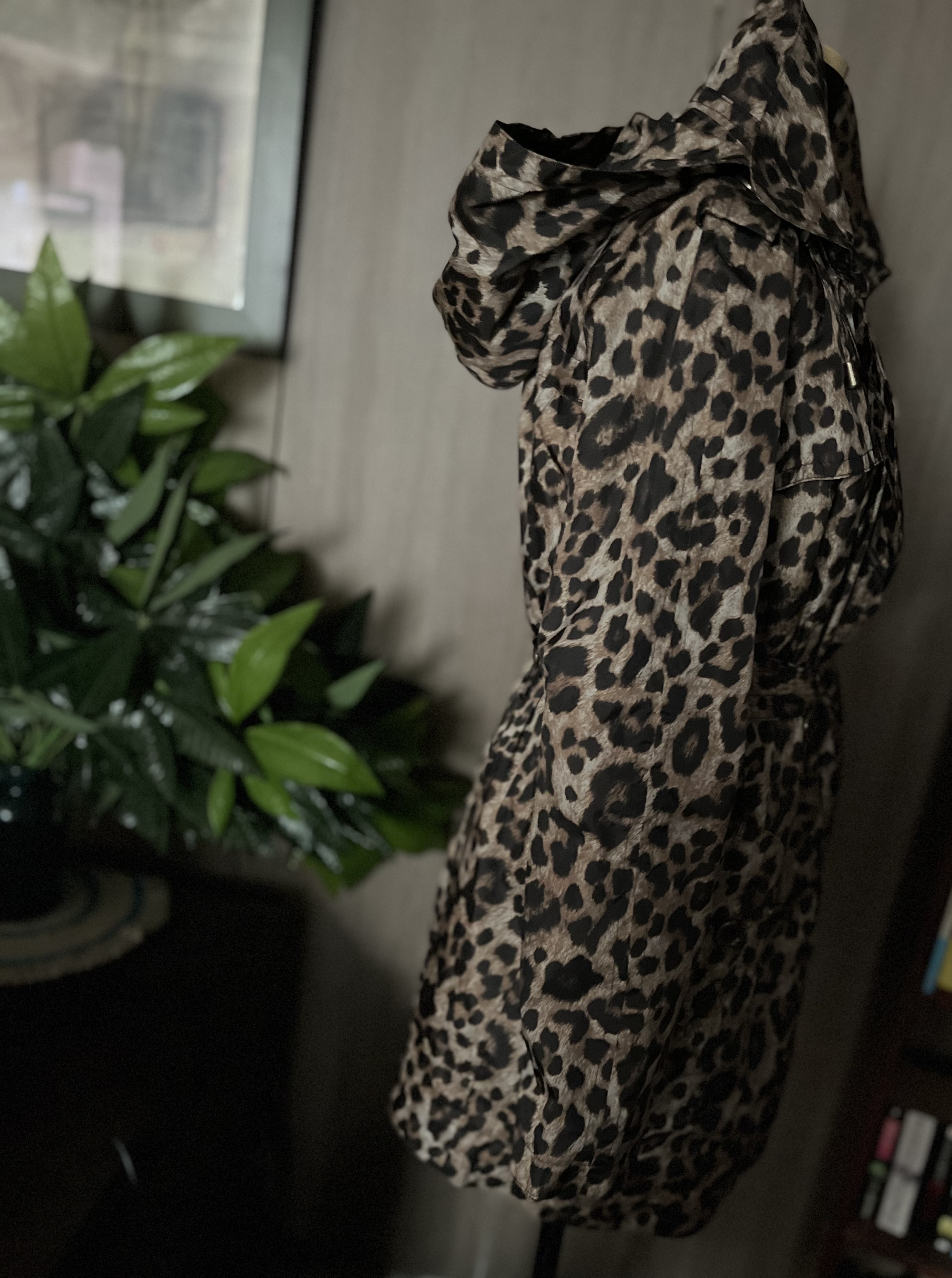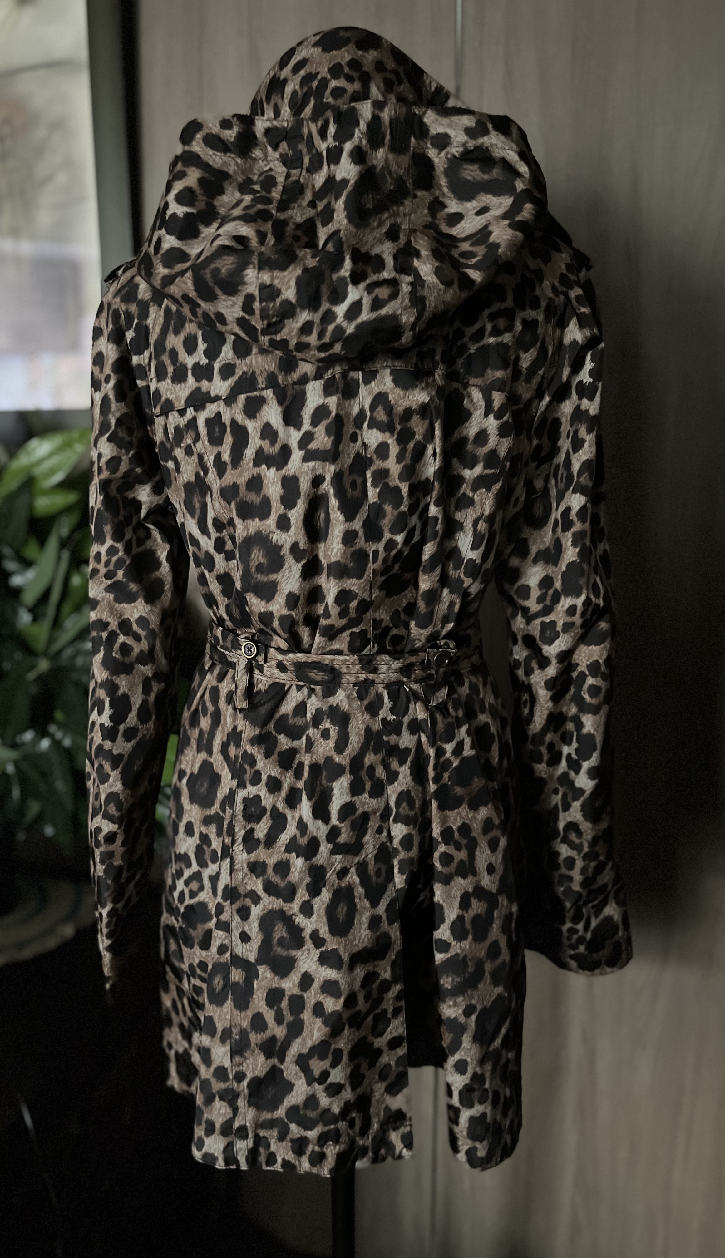 마이클 코어스의 레오파드무늬의 트렌치코트입니다 탈착후드,감촉을 느껴보니 생활방수 쯤은 될것같아요 물을 부어보니 잘 스며들지 않네요 비내리는 기분좋은 날 예쁜 레인부츠랑 합체!멋질거예요 구매후 한번도 입지않음 mint condition! M size 예요 봄,가을용