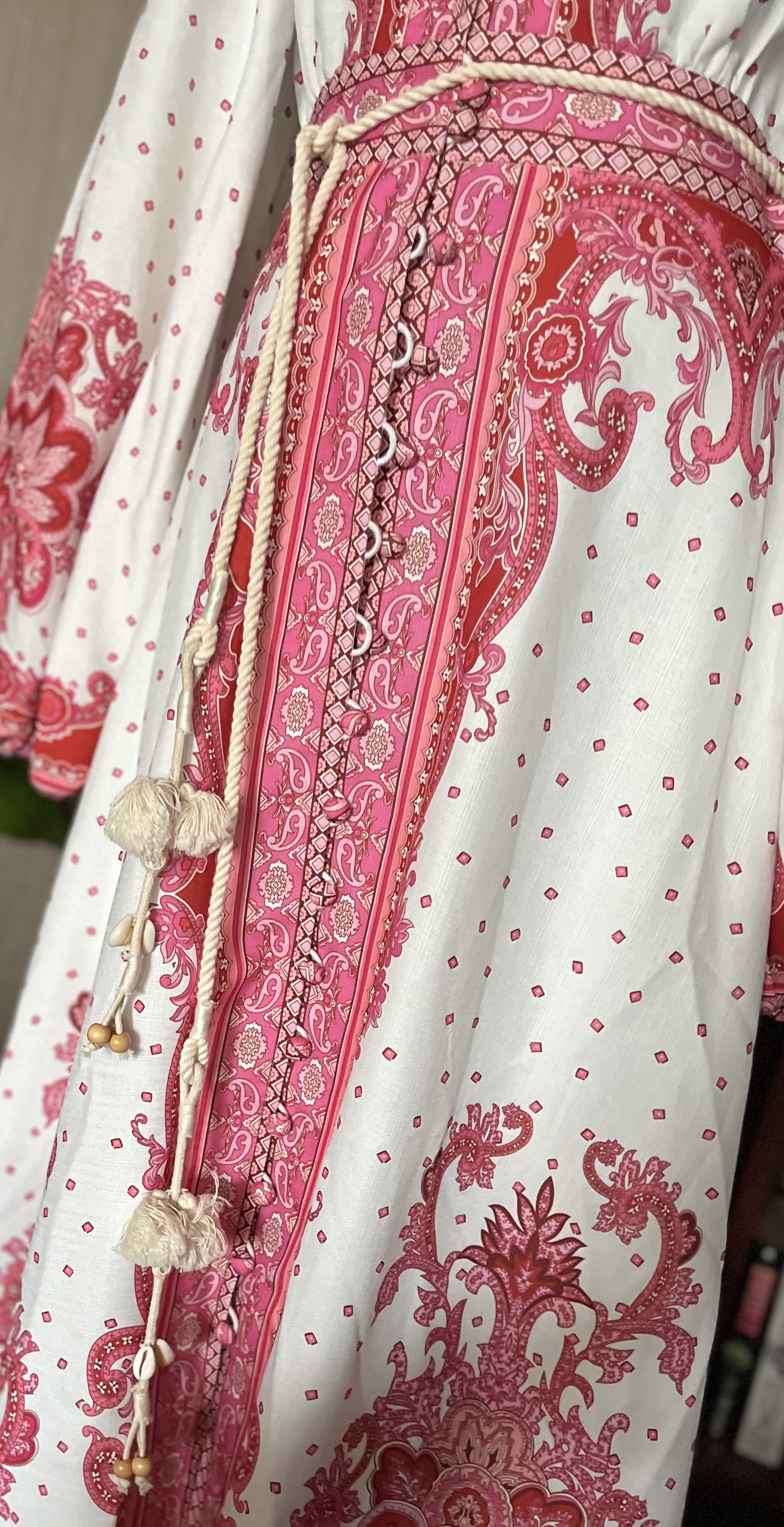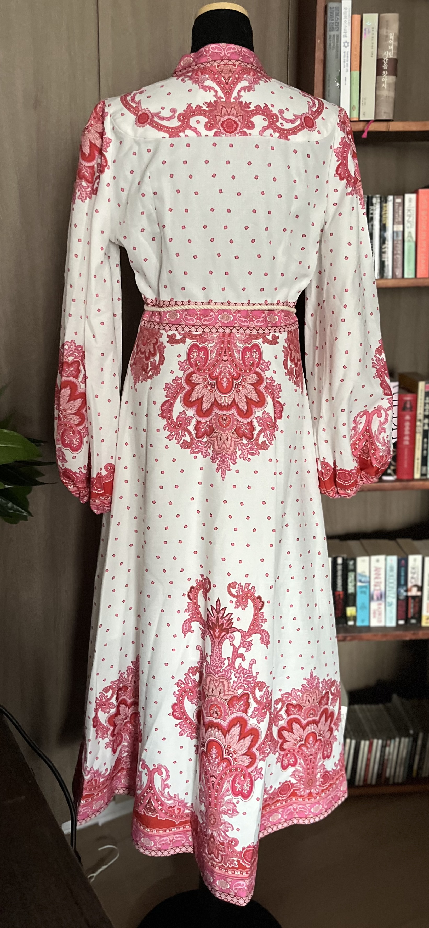 어디서 구매했는지 기억이 가물가물 합니다 걸려있는 모양이 이쁘더군요 레플인가도 의심도 듭니다만 착용시 기분은 좋을것같고 -원체 아름다워요- 전원드레스 같기도하고 히피풍인 냄새도 나구요 완전 새 드레스. 머티리얼은 코튼같습니다 꽃 흘날리는 봄에 입어보세요 아마 날라갈듯? 55size 짐머만 디자이너의 옷이였어요!