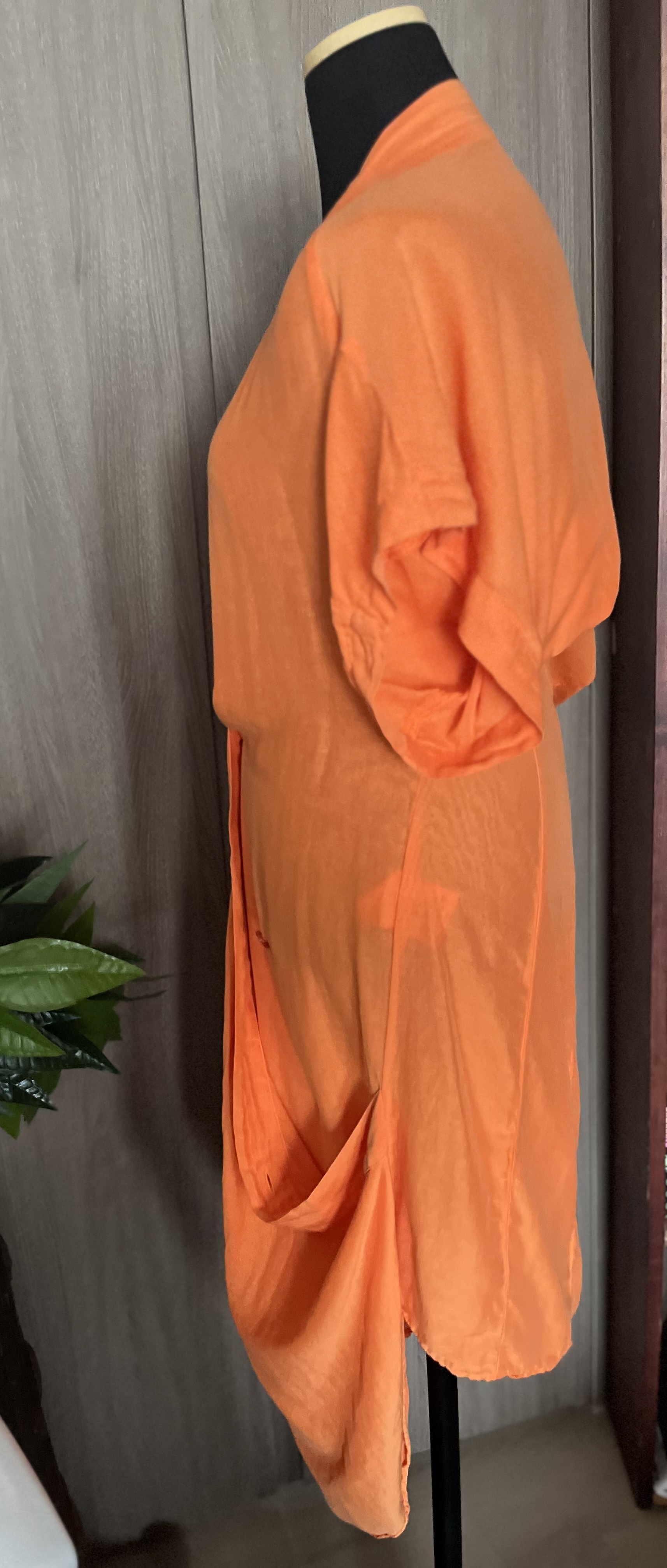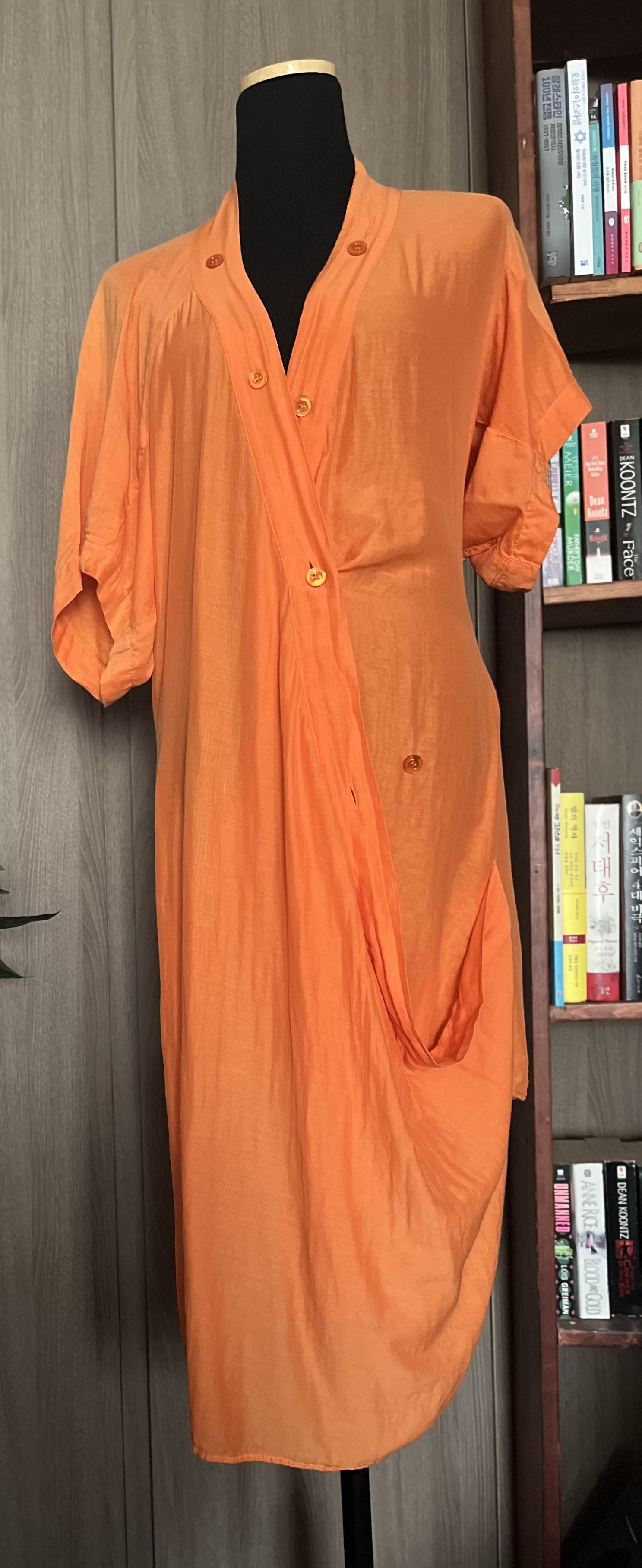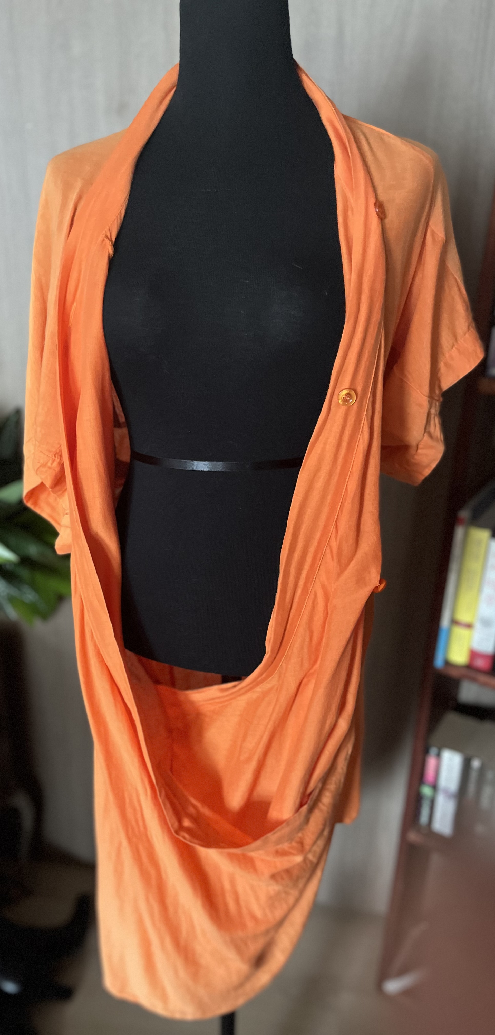 알렉산더 매퀸의 아방가르드 룩 원피스입니다우선 어깨선부터 보세요 왼쪽부분은 정상적으로 어깨에 선이 있지만 오른쪽부분은 거의 가슴위쪽에 어깨선이 있어요한마디로 얘기하자면 옷을 반으로 갈랐을때 좌측은 정상의 디자인이지만 우측은 한뼘 정도? 아래로내려와 있어요 양 사이드의 설계는 삐뚤어진거죠 그래서 뒷부분도 등이 판판하지 않고 삐뚤어져 있으니 셔링이 잡혀지고 치마길이 역시 어느 한쪽이 짧든지 길든지 하겠죠? 그런데 착용시엔 남다른 독특한 매력이 있어요 어떻게 이런 생각을 할수있는건지 ,,하긴 생전에 패션계의 천재, 악동이라 불리웠던 사람답게 그의쇼를 보면 패션쇼 라기보다 어떤 행위예술의 무대를 보는것같은 기이한부분이 많습니다 그의 오띄꾸르뜨는 아무도 따라할수 없는 비범한 부분입니다 여러 디자이너의 옷들을 수 없이 보아왔지만 아무도 알렌산더의 창조력은 타의 추종을 불러합니다 그러니 그 누구도 맥퀸의 레플을 만들어내지 못합니다 해골 스카프나 클러치등 은 본적이 있습니다만,, 갑자기 요절해 버리는 바람에 안타까울 뿐입니다 자 치마부분은 버튼으로 조절해서 늘어진 형태로 만들수 있고 버튼을 풀어버리면 동그랗게 너울이 생깁니다 보기보다 착용시 희안하면서 아름다울 것이예요 전 아방가르드 룩을 좋아하다보니 별 낯설지 않지만 그렇지 않은분들은 이게 뭐냐 할수 있단 말씀입니다 입을수없게 만든옷이 아니니 도전해 보시길 새옷이라 보시면 되구요 날씬 55 .