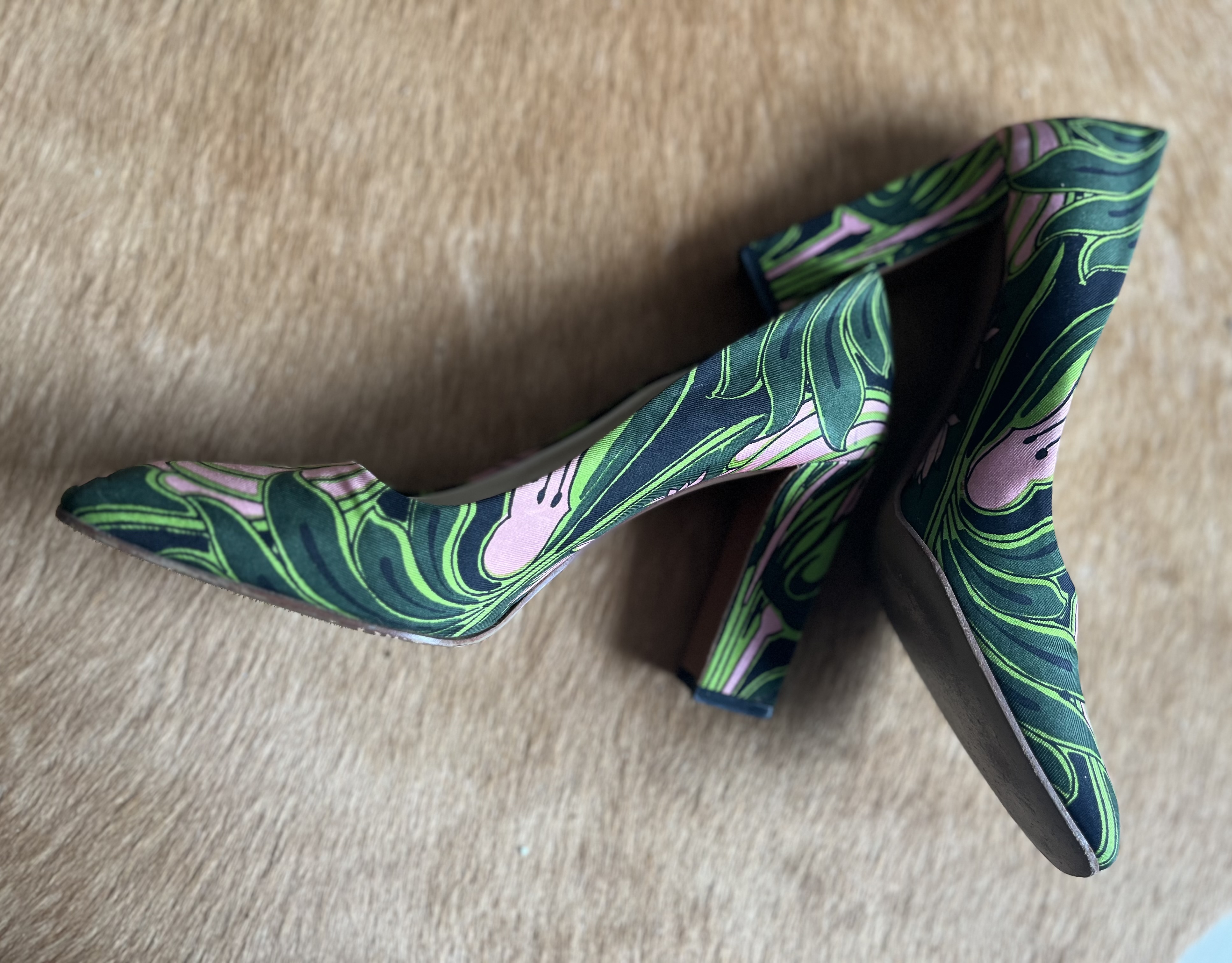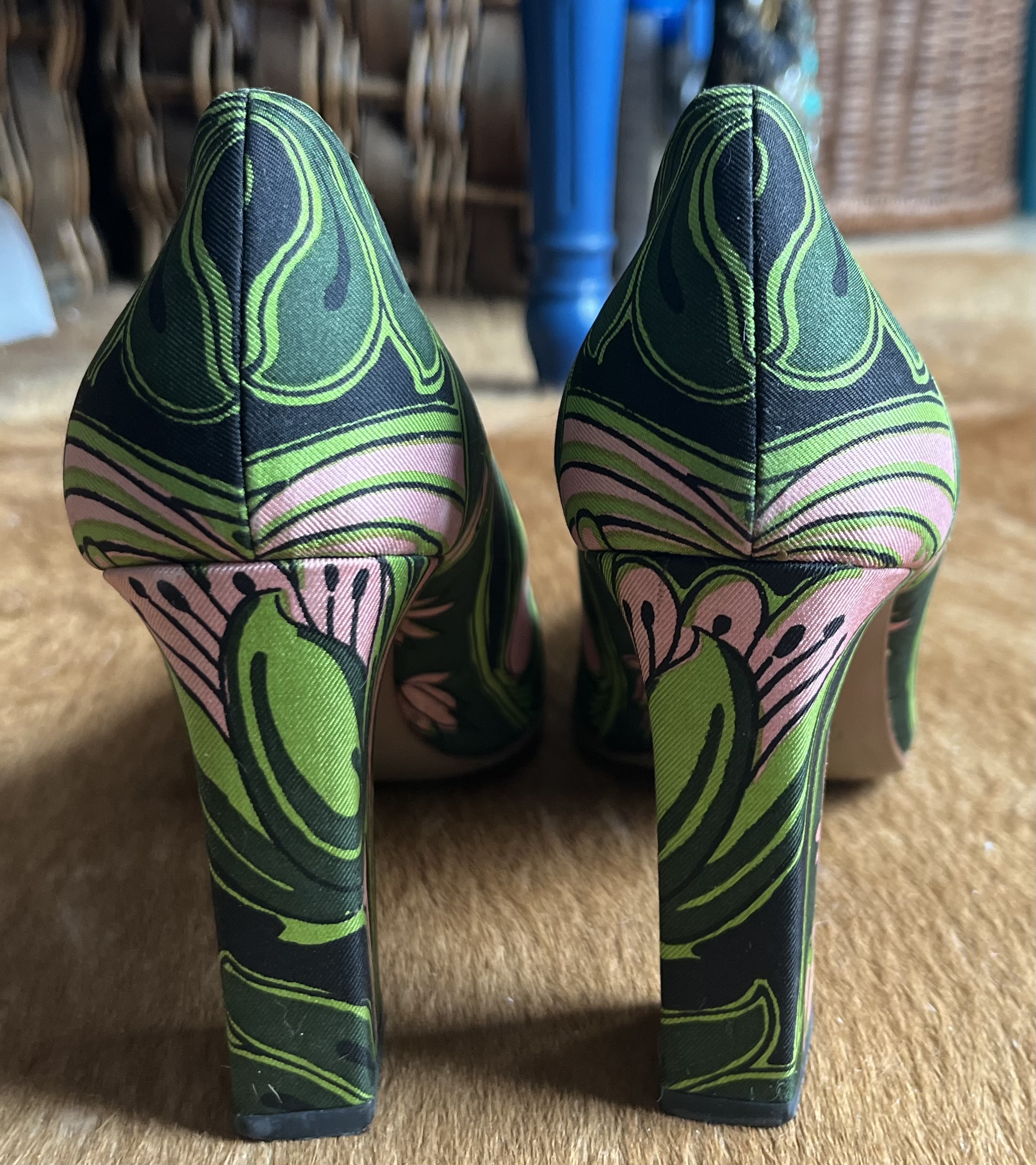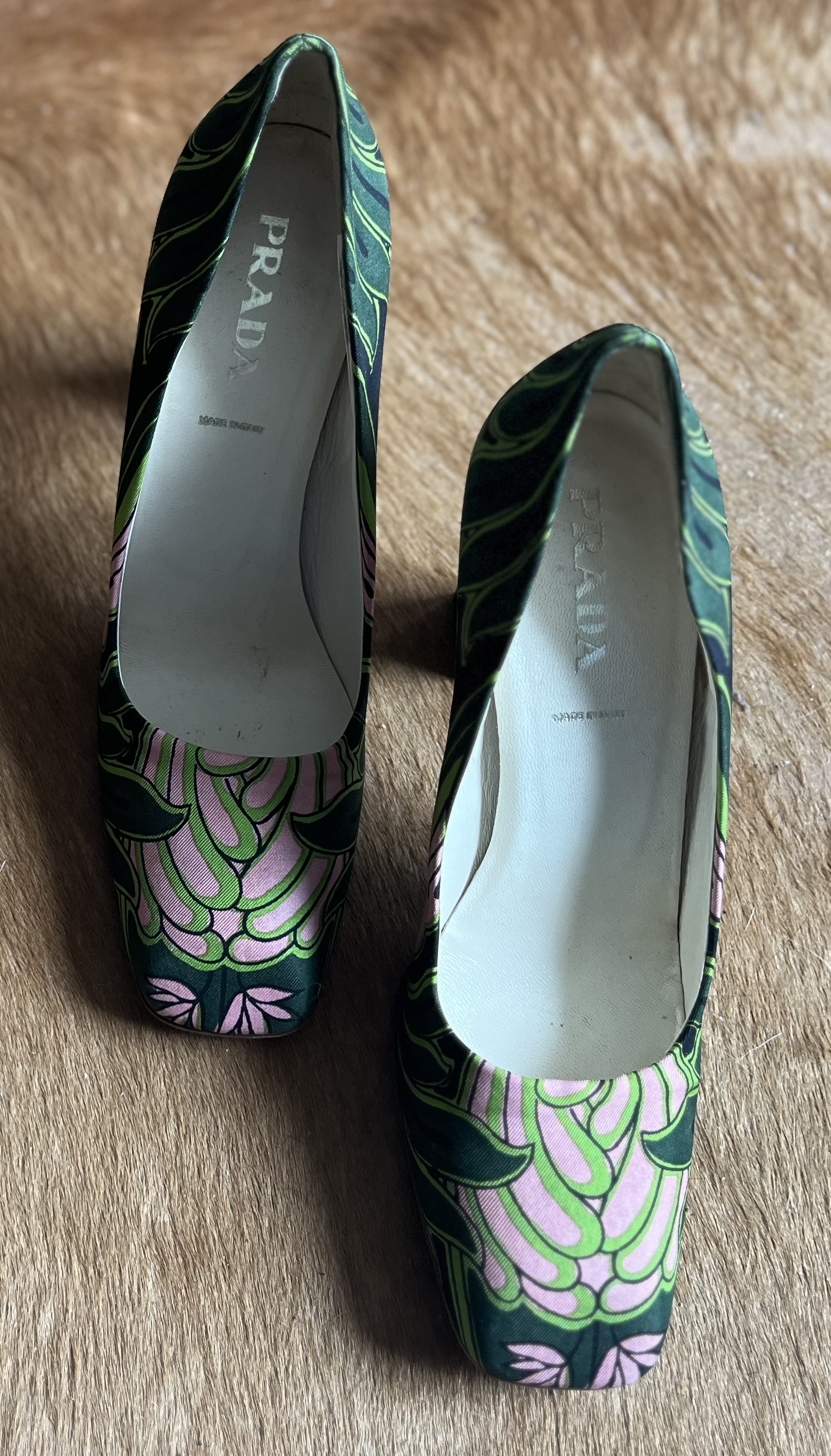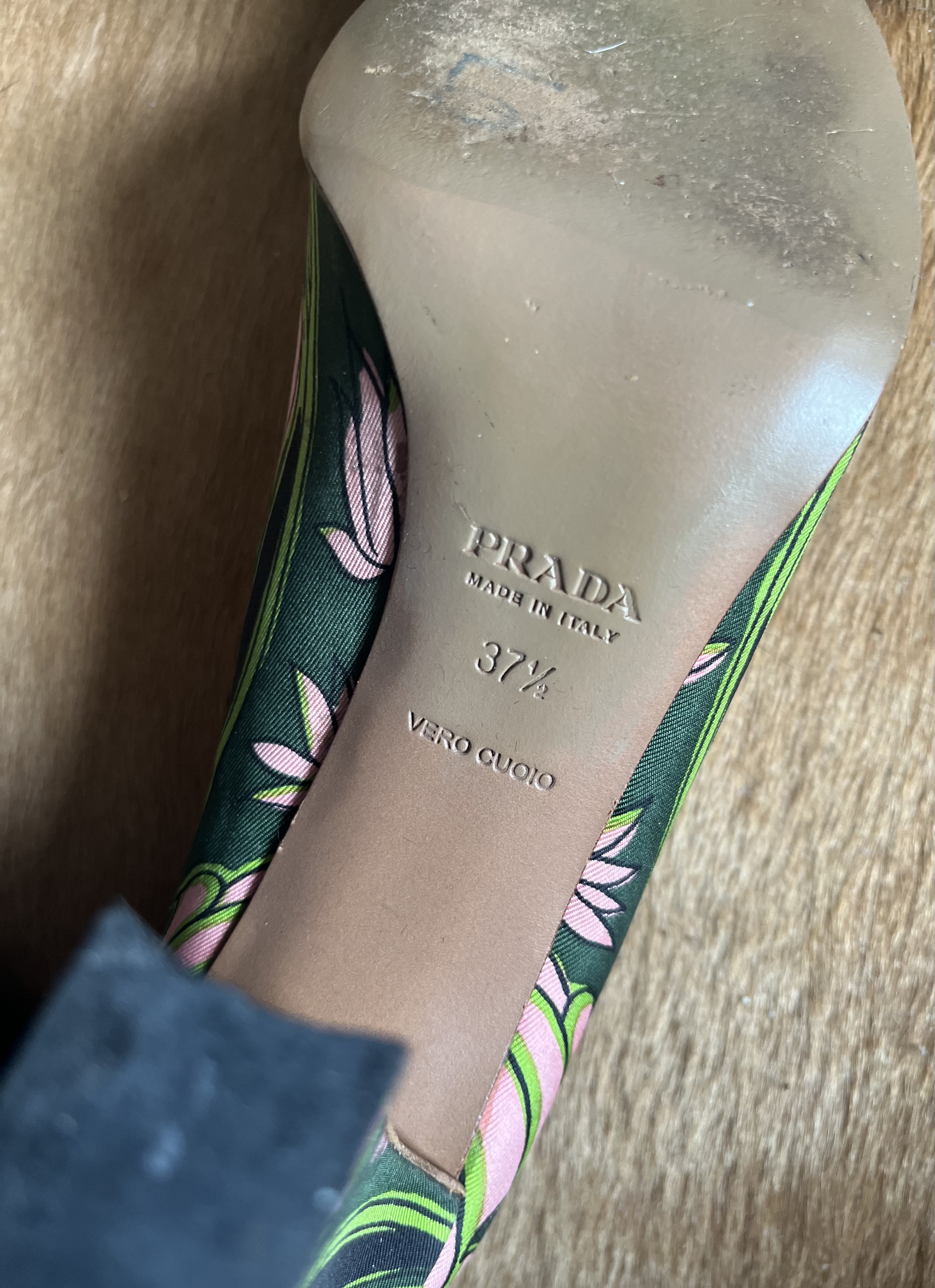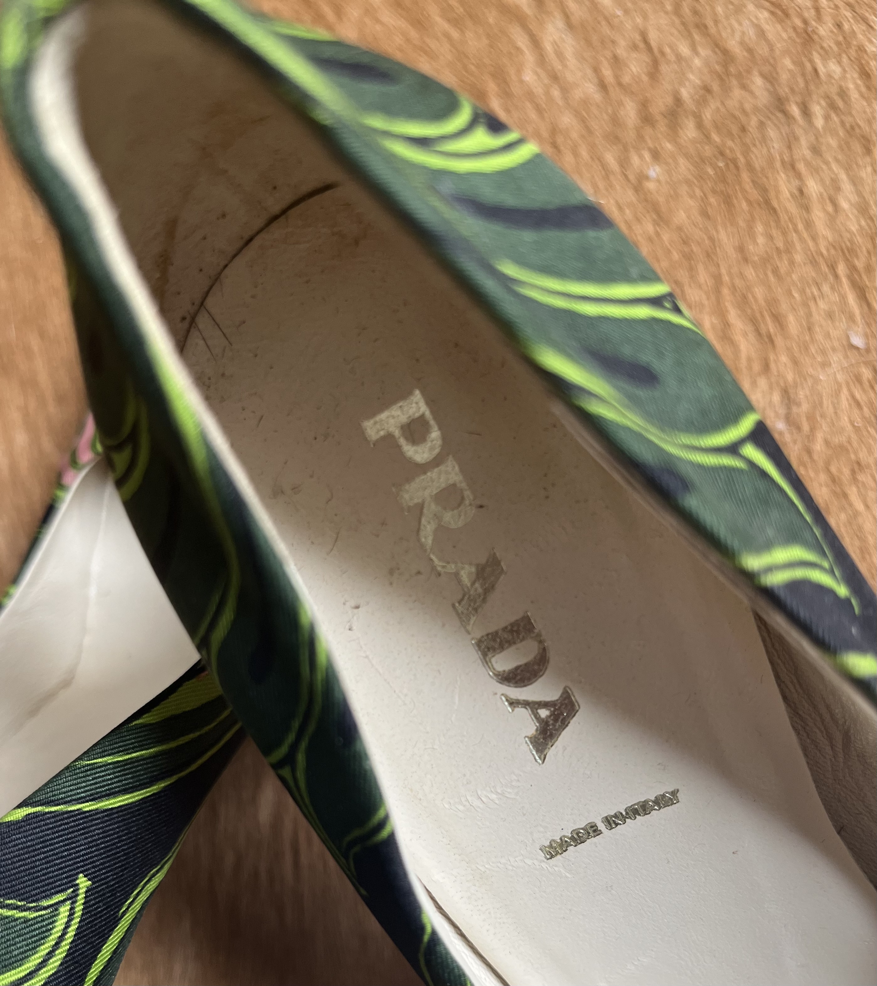 천 재질이고 사이즈는 37반. 바닥에만 흔적보이고 다른곳은 perfect! 이쁘죠 프라다슈즈!