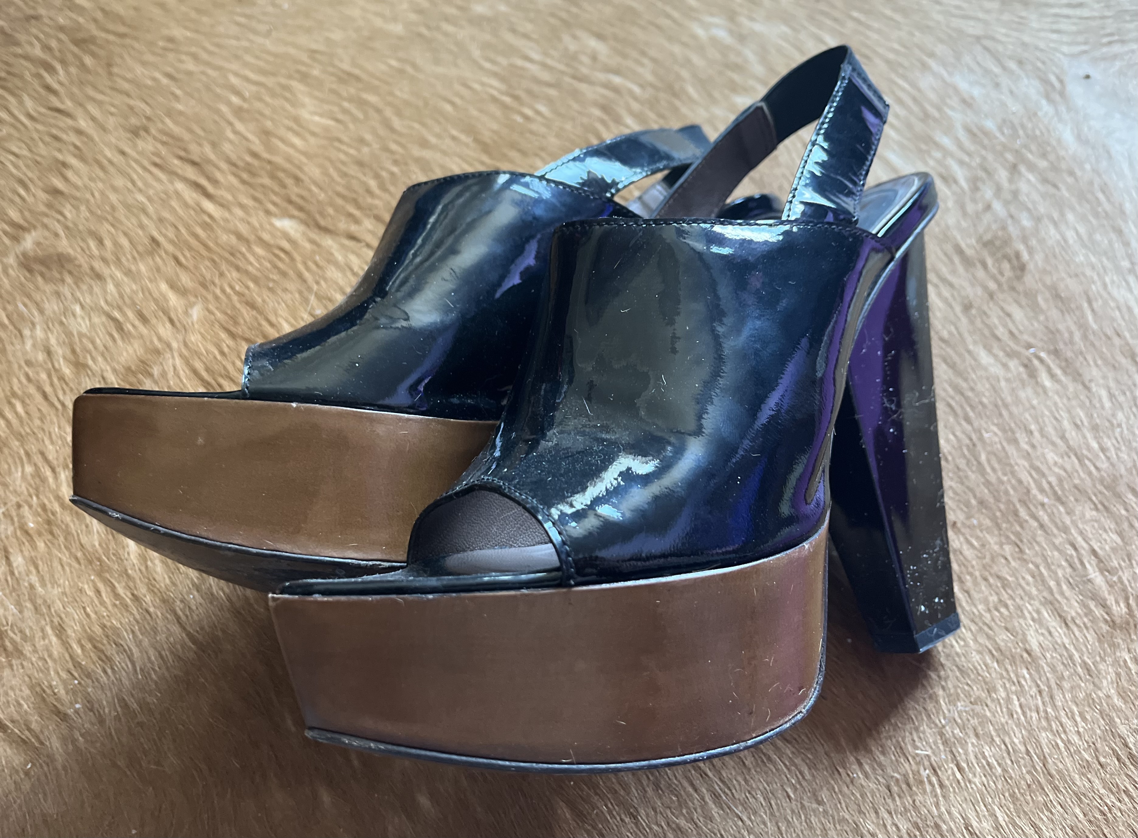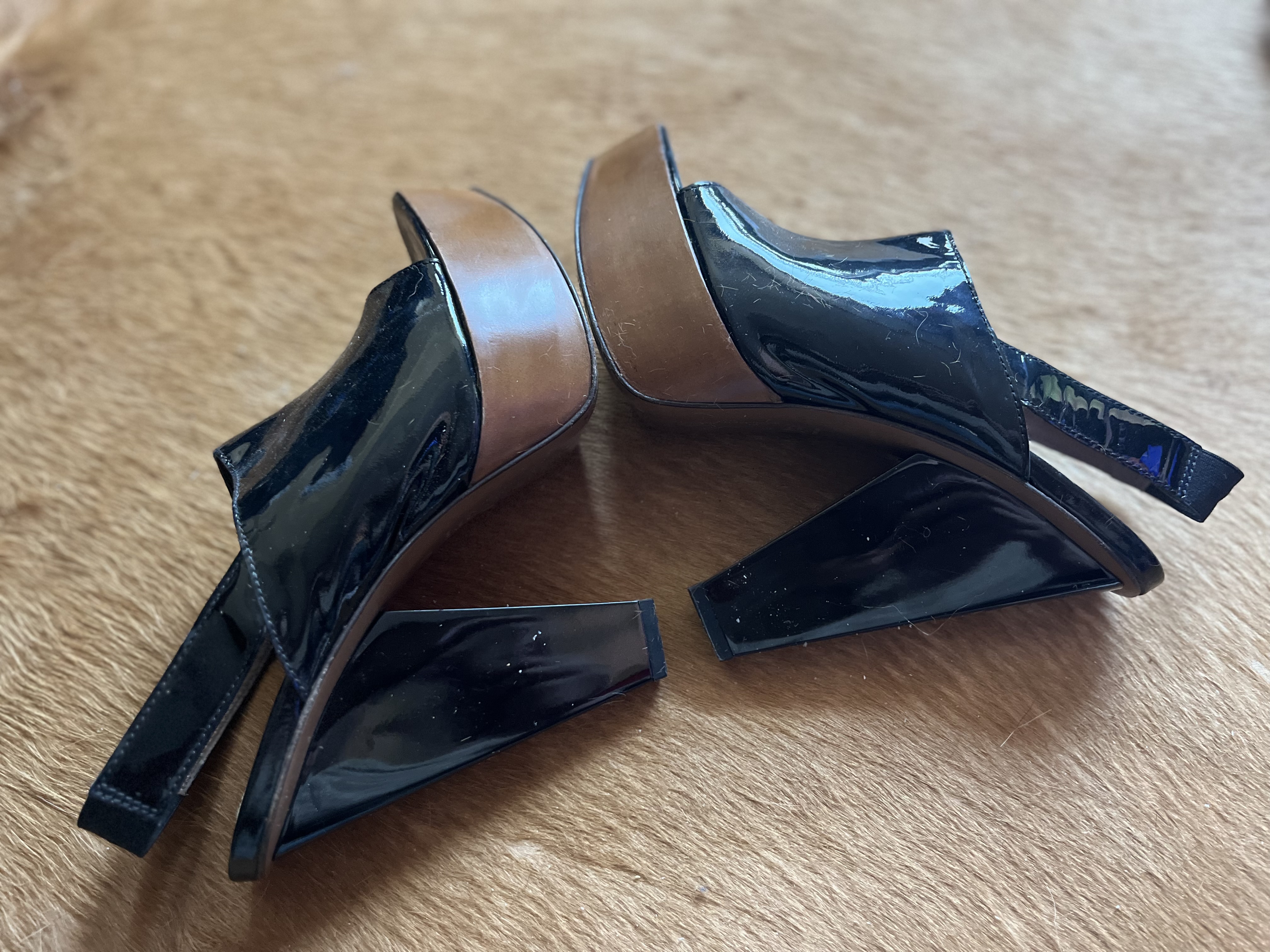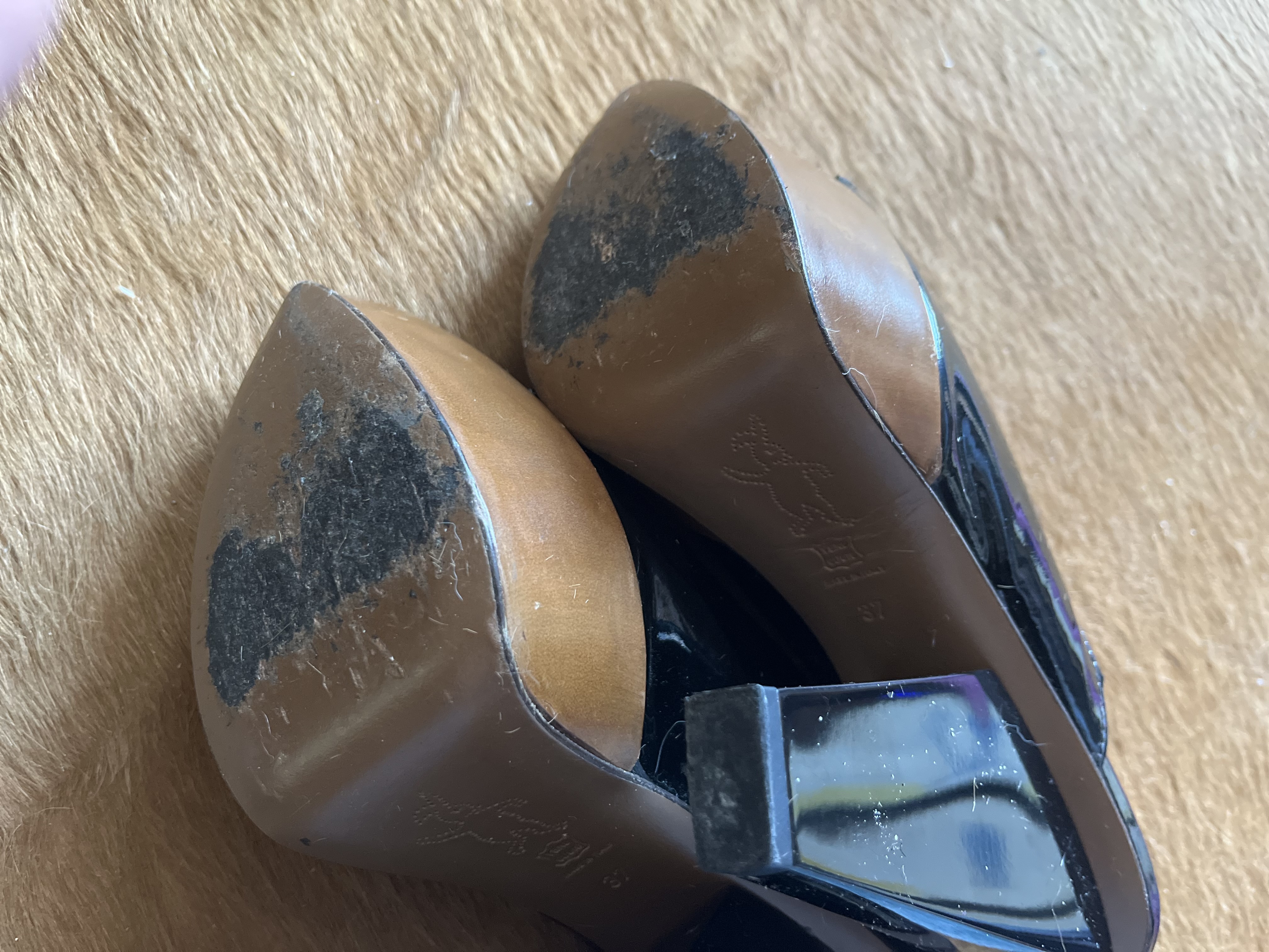 거 참 왜이리 후줄근하게 보이는지 맘에 안듭니다 제가 사진을 잘 못찍어서 표현상태가 그러기도 하겠지만요 이 마르니 플랫폼슈즈도 코 부터 쫘악 잘 빠진슈즈예요 바닥에만 사용흔적보이고 다른곳은 컨디션 좋습니다 슈즈뒷축을 밴디지로 만들었기에 까질염려는 하지않으셔도 될것 같습니다 37 size. 실물이 훨씬 깨끗하고 신으면 더 이쁠거예요