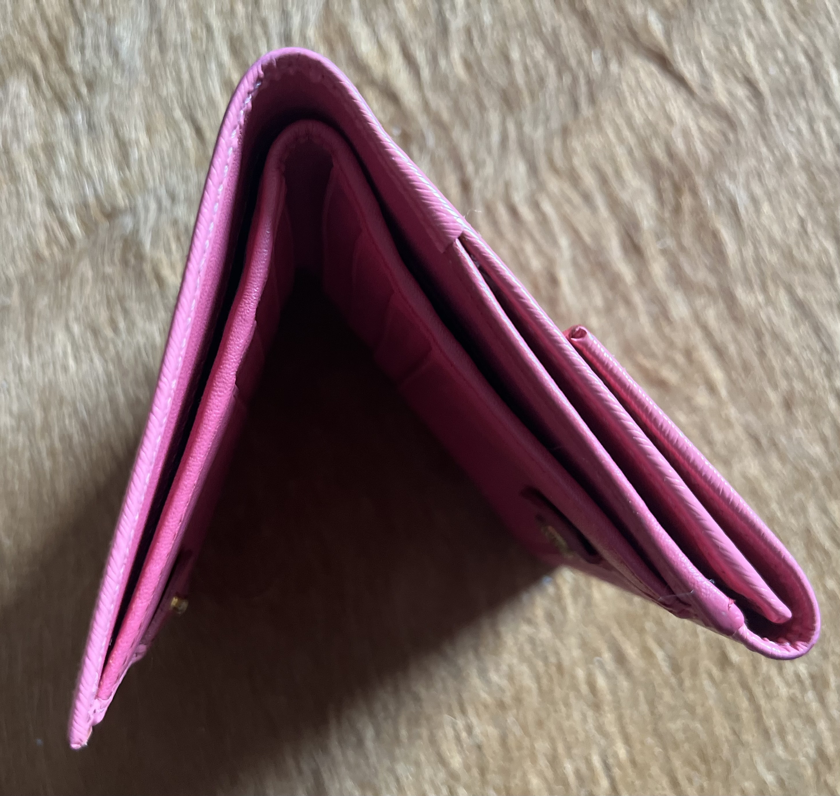 vintage wallet 11.5cm 9.5cm 지갑 펼쳤을때는 19cm. Excellent condition! 빛을 너무 받았는지 완전 핑크핑크 입니다만 정확히 말씀드리자면 살몬컬러와 제일 흡사합니다 톤 다운된 살몬색입니다