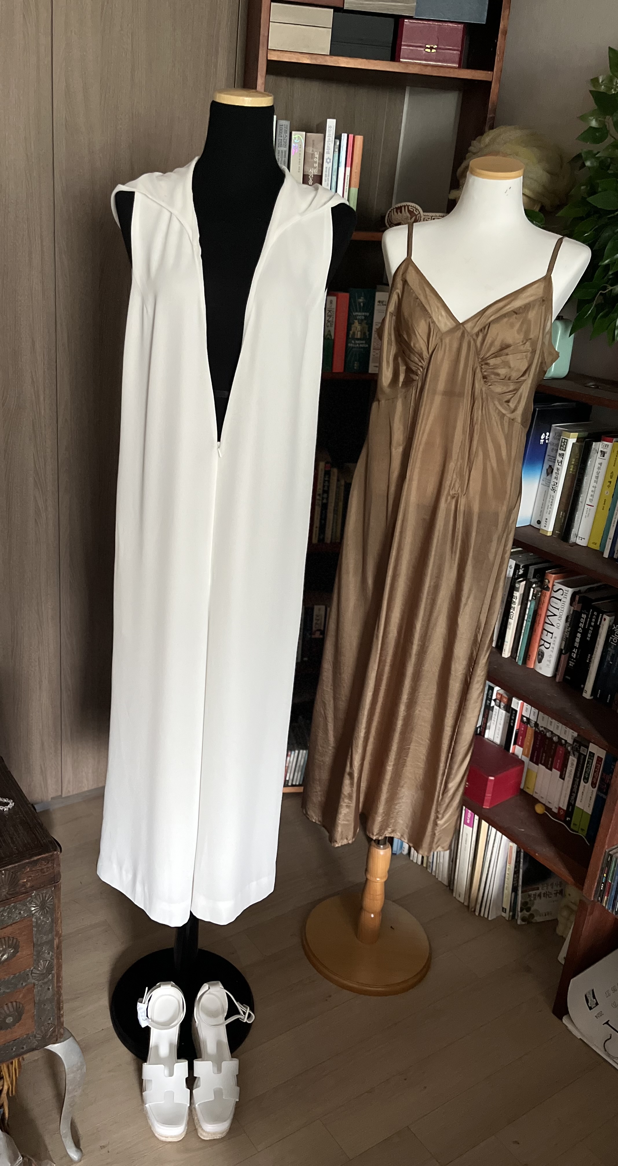 처음 이옷을 봤을때 아아 이옷은 정말 멋진옷이구나 느꼈어요 후드가 이 옷을 더 부각시켜보입니다 전 후드달린옷들 좋아하지 않는데 이 옷은 후드가 있어 감성적인 느낌을 줍니다 흑백 고전영화에서 여 배우들이 입었을것같은 분위기가 떠올랐어요 그때 여성들은 스카프로 머리를 두르고 후드를 써서 멋을냈었지요 바로 그 느낌이 저를 사로잡는 매력이 있었습니다 그리하여 당장 찝어왔지요 착용시 정말 고져스할거예요 넉넉하니 66 사이즈분께 맞습니다만 오버사이즈를 좋아하시는 분들은 사이즈에 구태여 연연하지 않죠? 예거의 멋진 점프숫트였습니다 샘플이였는지 새것이예요
