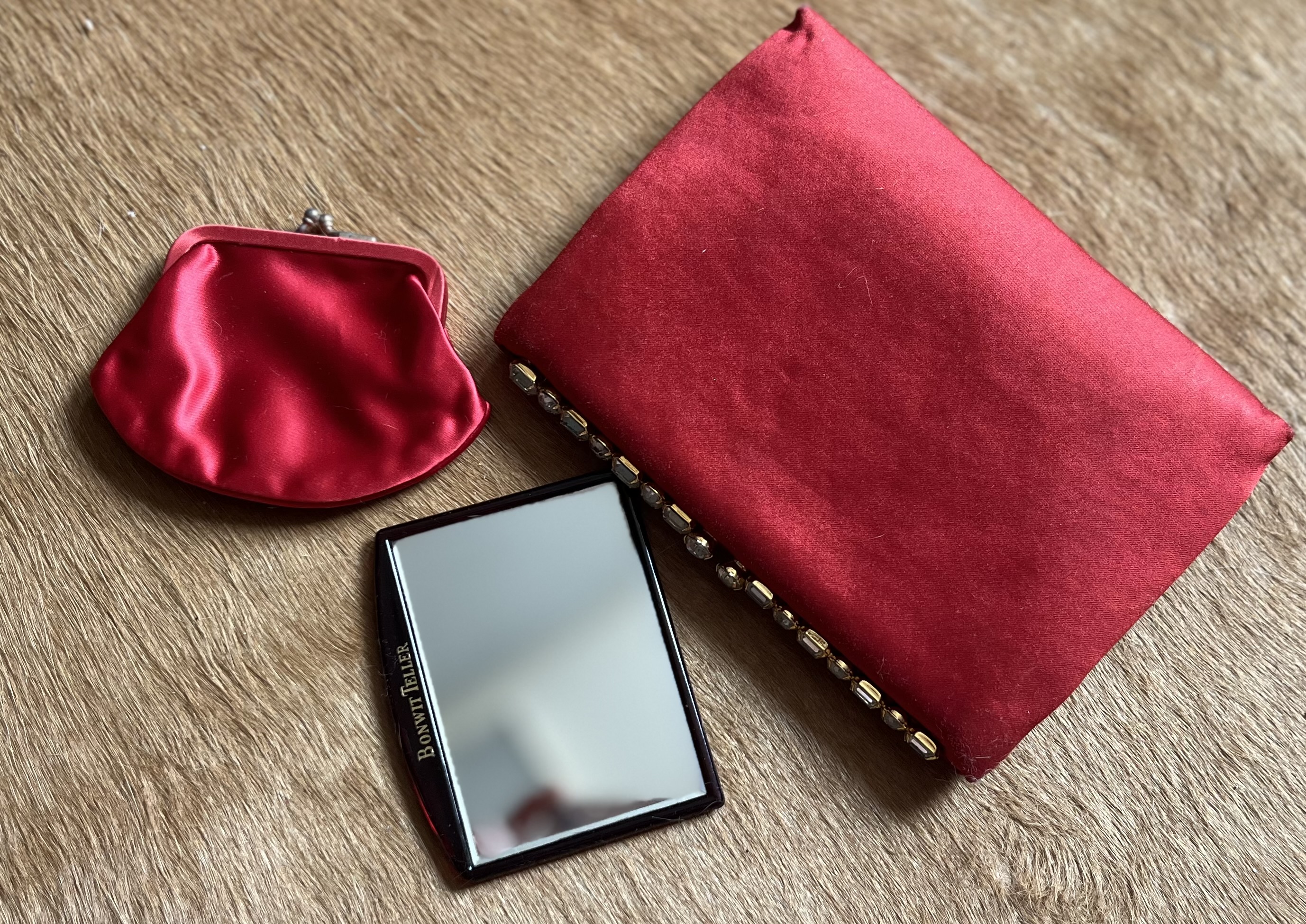 Condition 이 좋아요 그렇죠? 아기자기한 동전지갑과 거울이 들어있고요 백 윗부분 보석들 보이시죠 하나도 스크래치 없이 정교하게 잘 박혀있어요 아무런 브랜드네임은 없습니다 빈티지 레드 백 들고 다니시면 눈에 뛰어 명품가방보다 훨씬 이쁠거예요 선택해 보세요