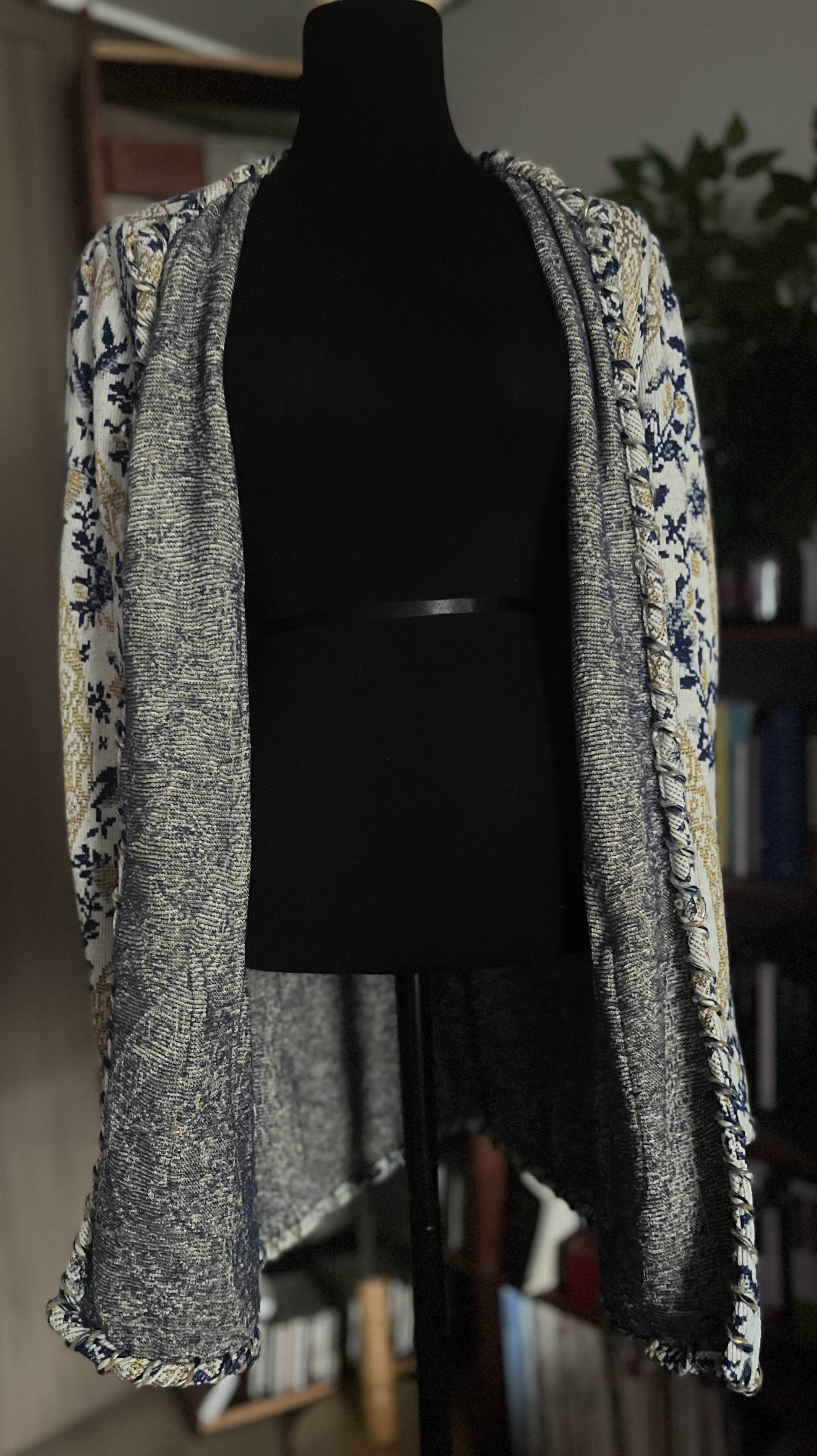 간단히 웅가로 하면 오드리 헵번이 유명세를 떨칠때 영화의상이나 개인 의상을 담당했었구요 한시대를 풍미한 유명 디자이너 있니다 초가을 가볍게 걸치기 좋습니다 4가지 종류의 머티리얼이 믹스 되어있구요 - 택 확인하세요 - 이국적인 패턴이 맘을 사로잡는군요 지금 이 세대에선 흔하게 볼수있을까요 만들어내지도 못할뿐더러 독창적인 패턴, 상상이나 할까요 이것이 바로 수십년전 그 세대, 사회에서만 만들수있겠지요 그래서 빈티지의 가치를 보여주는 부분이고 마치 보란듯이 빈티지의 위엄을 내뿜고 있쟎습니까 ?자수를 놓은듯한 카펫 무늬같기도 하고 튀르키에나 모로코 , 중동 분위기가 느껴지죠? 가볍고 독특한 패턴이라 지나가면 없습니다 단 하나의 나만의 재킷. 욕심내세요 만일 이 재킷이 뉴욕이나 영국 빈티지 샵에 걸려있다면 엄청 비쌀것이며 브랜드가 웅가로라면 무조건 구매하지않을까 조심스럽게 얘기해 봅니다 아니 이런 재킷을 어떻게 그냥 지나칠수 있을까요 ? 외국셀러들에게 보여주고 싶군요 가만히 놔두지 못해요 구할수도 없을걸 잘 아는 셀러들이라,,,,, 유럽사이즈10 이면 66-77 젊잔으면서도 고급분위기를 내뿜어주니까 무거운 자리에도 착용하셔도 참 좋겠네요 골드컬러가 섞여있어 골드시계와 팔찌와매치하세요 홑겹이니 소매를 걷어서 입어도 괜챤구요 청바지에도 자유롭게 매치해도 오섬!!!