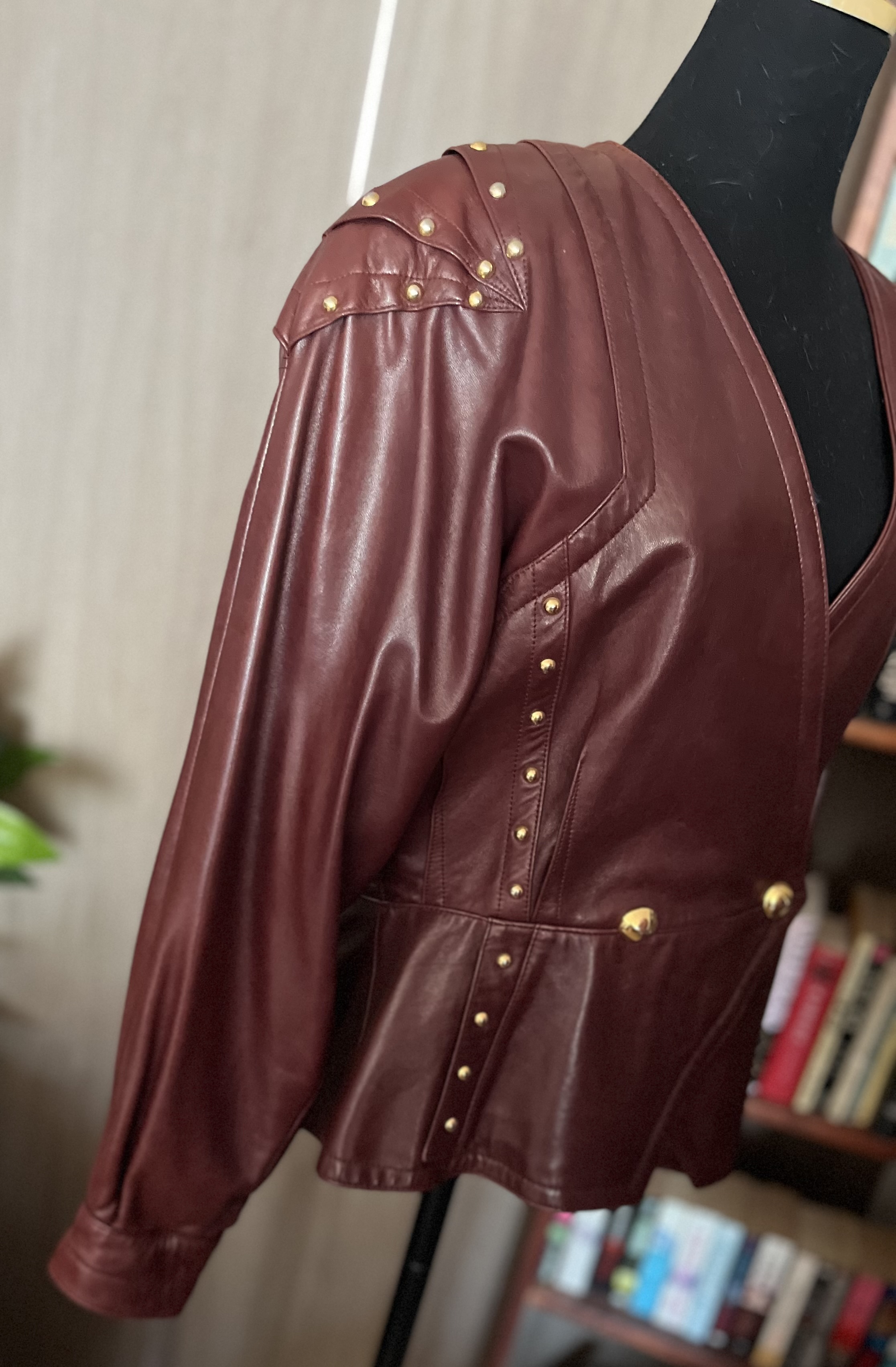 눈으로. 봐도 알겠어요 말랑 유연하고 램 가죽처럼 보여지는거요 실제로도 얘는 살아남기 몸부림을 친것처럼 소가죽인데도 양가죽처럼 매끄럽고 - 오래된 가죽은 뻣뻣해지고 매끄러운 질 은 떨어져버립니다 일단 뻣뻣해진 가죽은 버리는것이 예의? 예요 아무리 비싼 옷이라 해도 껴안고만 있다고 부드러워지지 않아요 절대. 에스까다가 가지고있는 퀄리티 너무 좋은 가죽이니 깊이 얘기하지않아도 되겠지요? 8,90년대 빈티지인데도 파격적이었이네요 쇠 찡을 많이 박아놓아 장식했죠 지금의 발렌티노나 발렌시아가가 대체적으로 옷은 아니지만 백에 박아놓고 있죠 이 에스까다 가죽 재킷은 허리를 잘록하게 보일수있게 디자인으로 숏한 길이예요 다리 무지 길어보이겠어요 믿고 구매하세요 아리까리 하시면 제게 문의 주시구요 버건디 컬러.