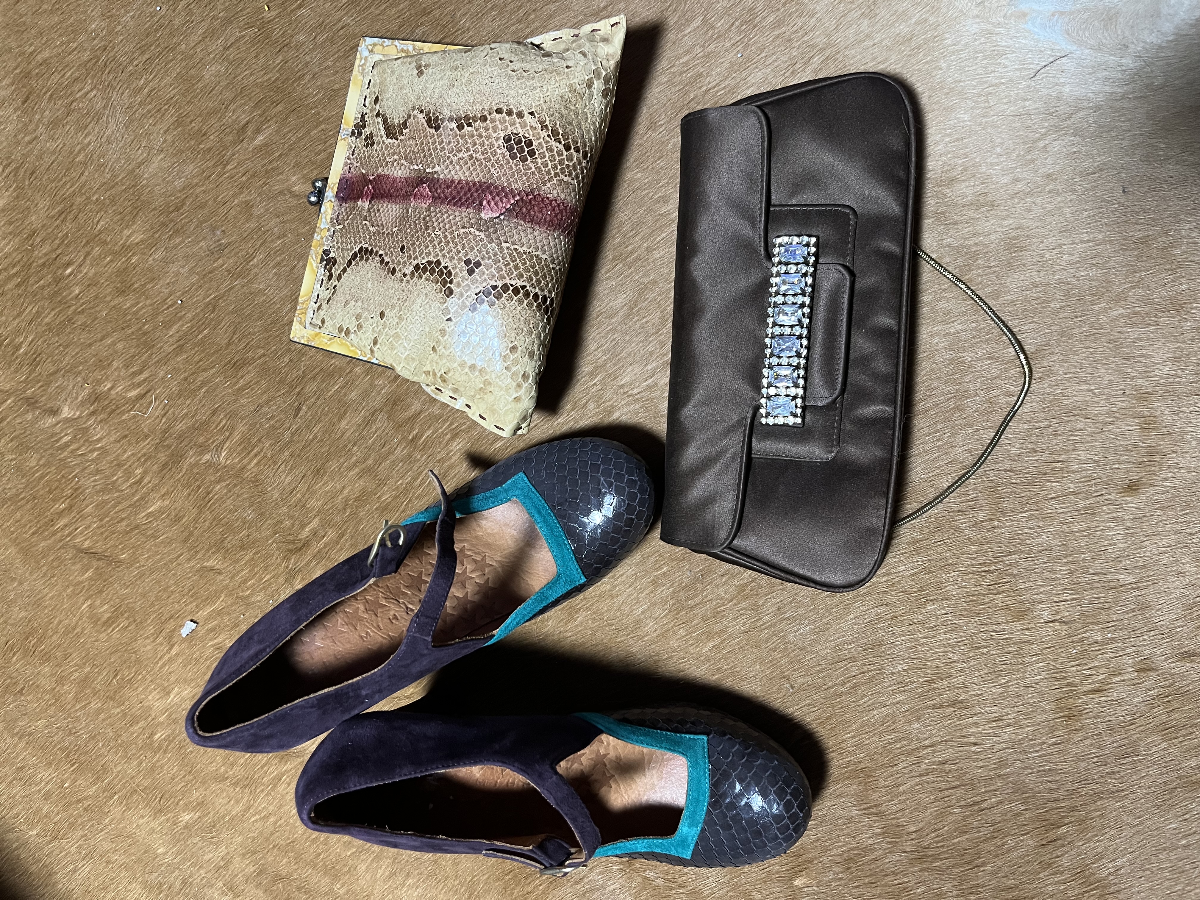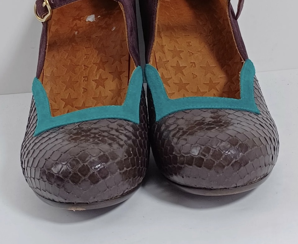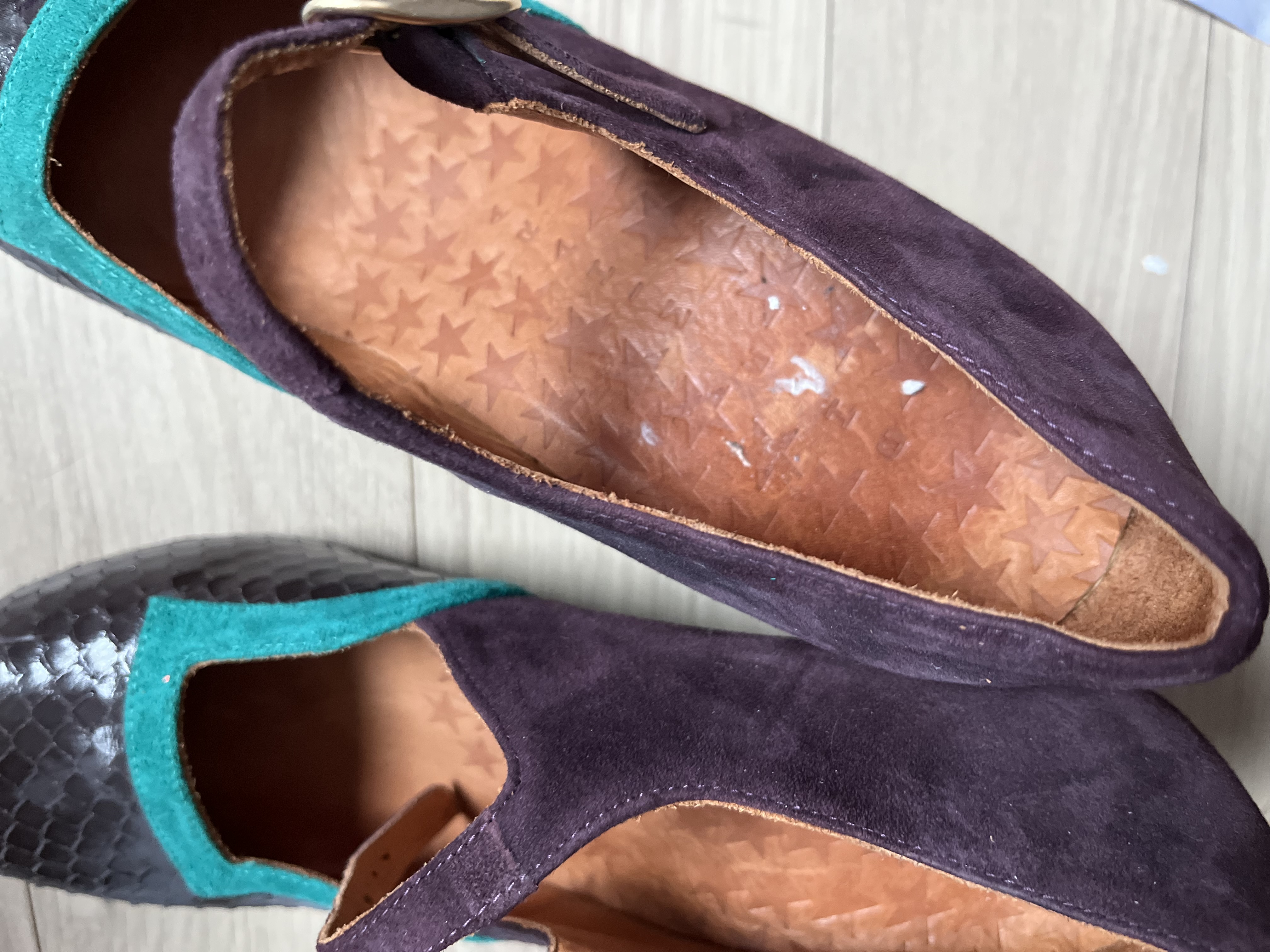 컬러매칭보세요 색을 참 이쁘게 썼어요 앞부분은 마룬 브라운의 악어가죽. 뒷부분은 자색 스웨이드로 만들어져 있어요 마치 어느 리조트의 해변같은 푸른 옥색? 을 포인트컬러로 밋밋함을 없애주었고요 유치하거나 kitsch 하지 않습니다 되려 고급스러운 분위기가 흐르는데요 크로커다일 가죽이 이 컬러감을 압도해 버립니다 우선 신발이 견고하며 가볍지 않아 무게감을 실려주는 노블함이 묻어납니다 어쩌면 리얼 크러커다일 가죽이 이 슈즈의 핵심일지도 모르겠습니다 잘 만들어진 슈즈예요 어디든 발랄하면서도 우아함을 느끼실수 있는 멋이 있어요 아마 이 슈즈를 신고 외출이라도 한다면 기분이 좋아질겁니다! 별 큰 설명 필요 없을것 같습니다 사진그대로의 반짝는빈티지 슈즈라 장담 드리죠 궁굼한 점은 Q&A 를 주저하지 마세요 37/반 MADE IN SPAIN.