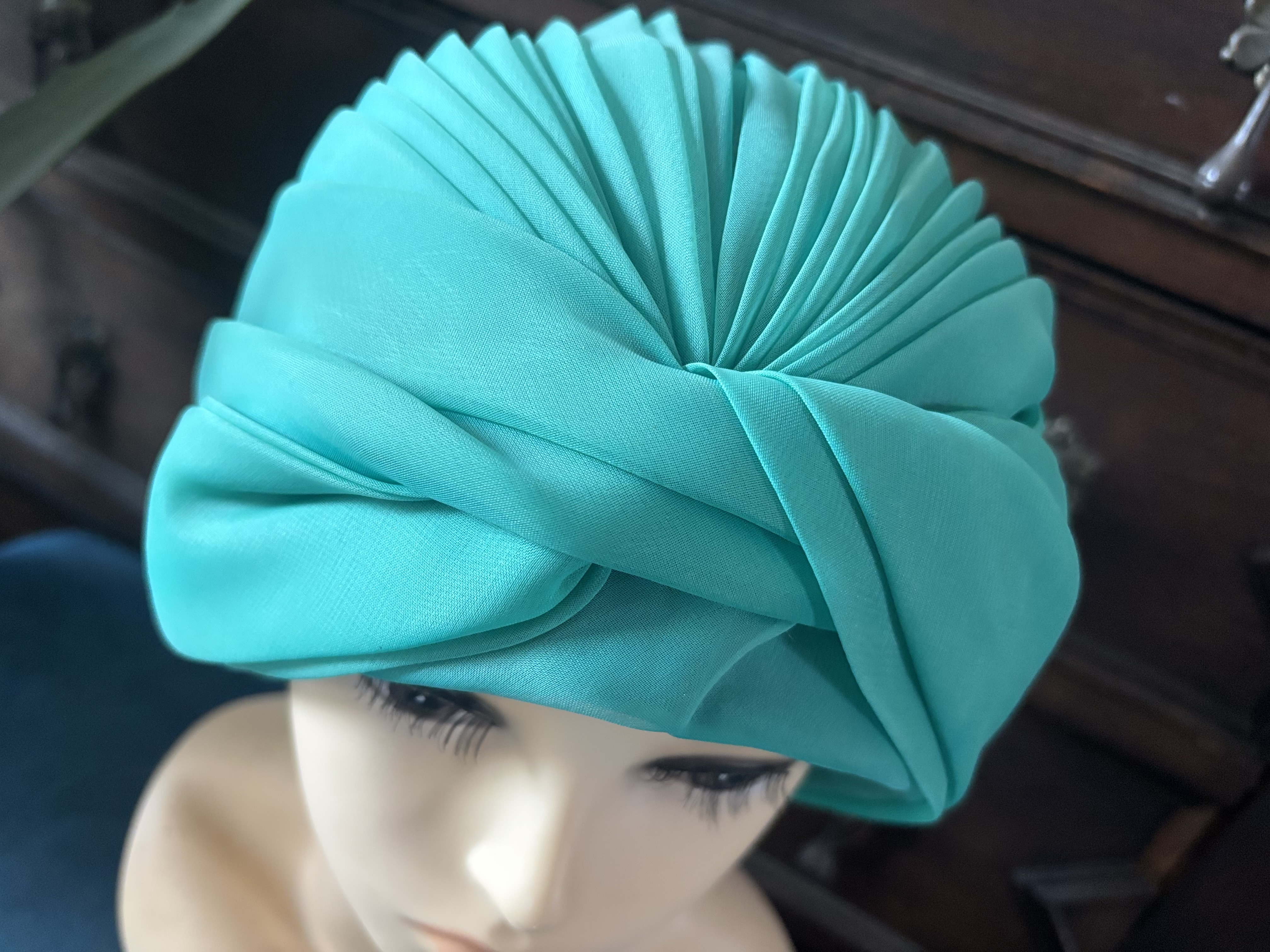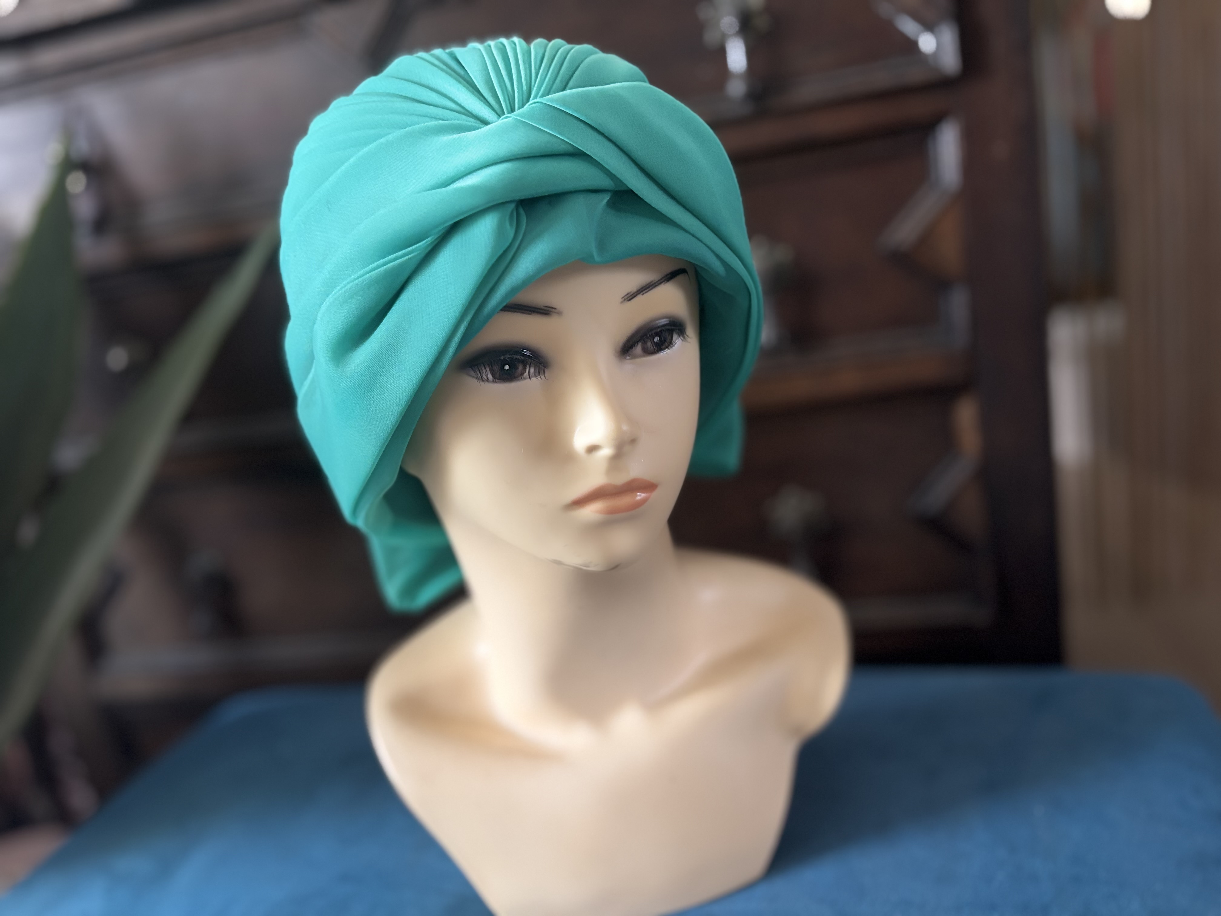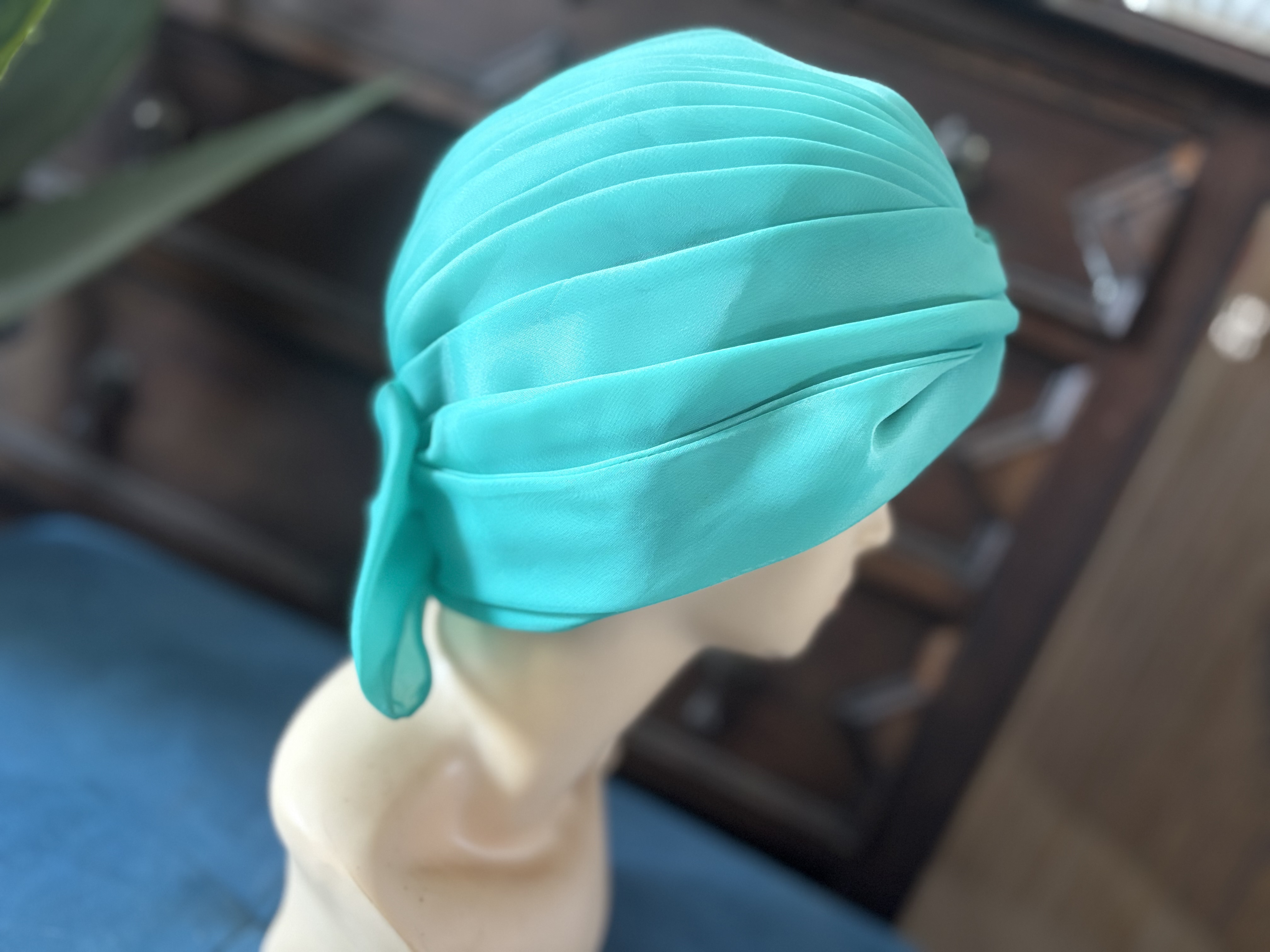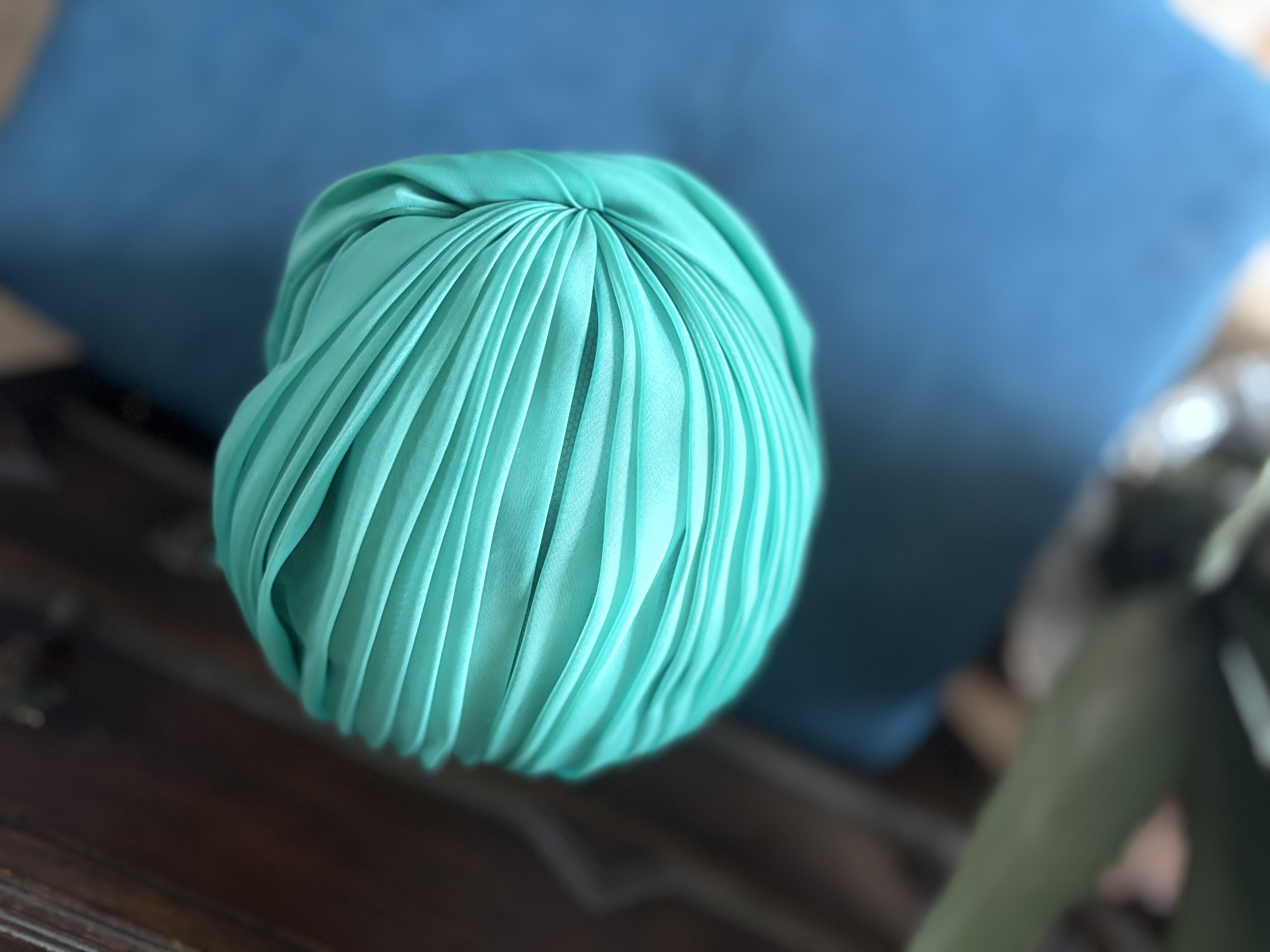 지중해 바다컬러의 터번이 이뻐보여서 덥석 ! 확실히 백인애들이 머리통이 작은가봐요 신축성도 1 도 없는 터번이라 미안하지만 대두님들은 pass ~ 터번의 지름 20cm