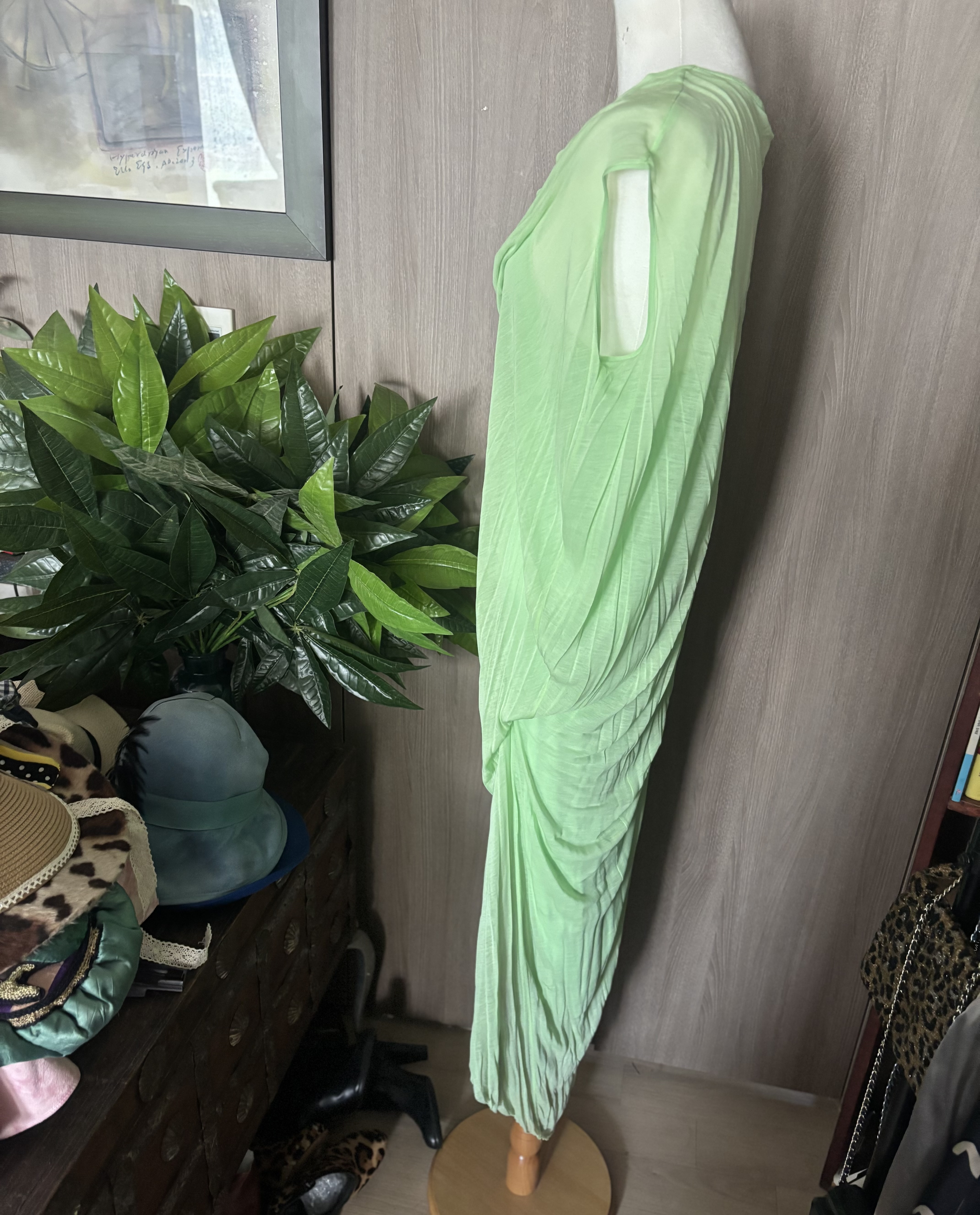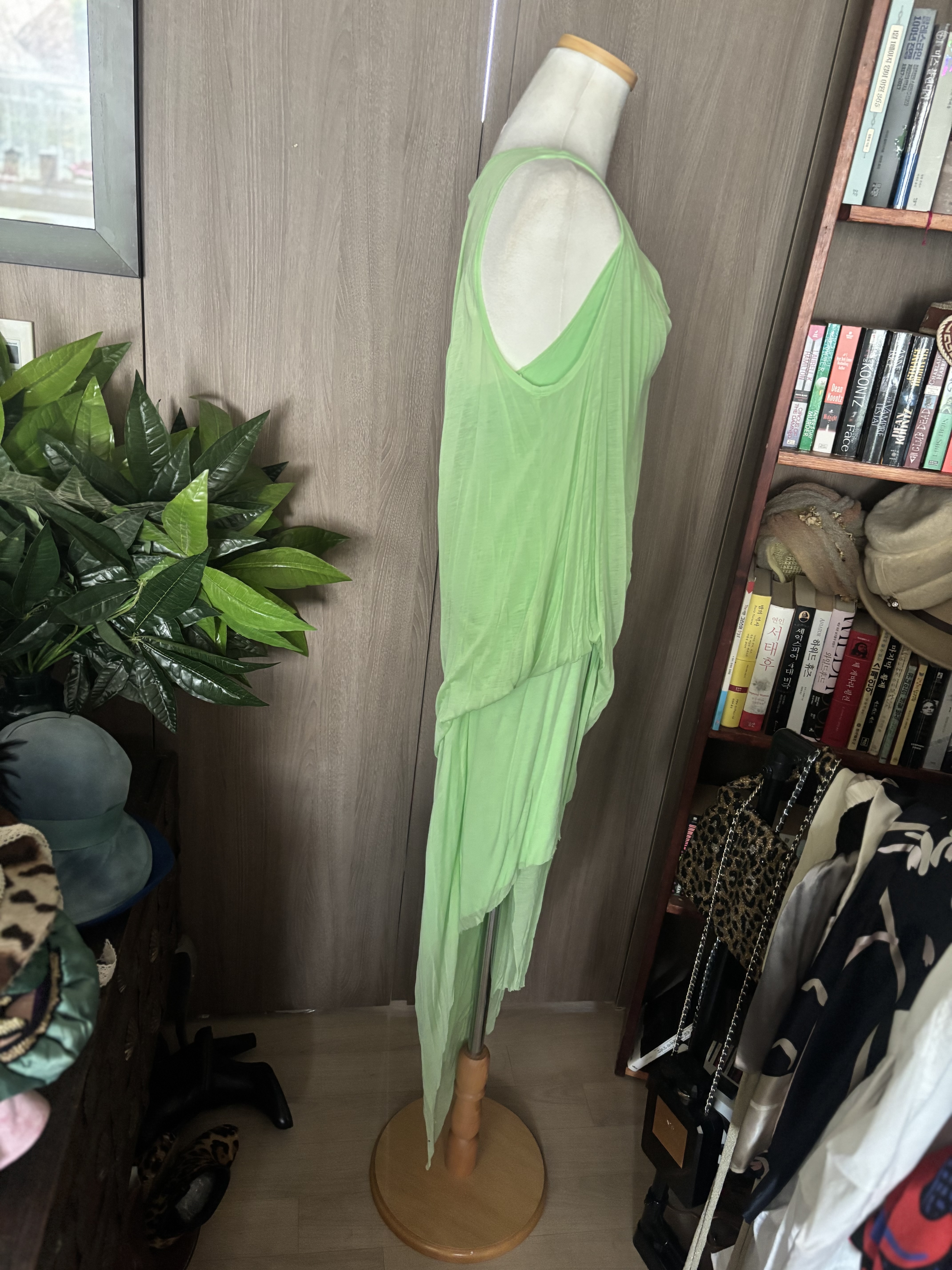 정말정말 힘드러요 이런비대칭의 옷들의 치수를 대는것은요 아예 잴 수가 없어요 기술자가 아니면요. 들쑥날쑥 삐쭉빼쭉 길다 짧다 휴 전 포기 ! 마른 55 분들에게 딱 일것 같습니다 신축성 없어서요 그치만 입어보세요 쥑입니다 헬무트랭이 아무렇게나 만들어 놨을리는 절대 없고 가봉을 거쳐 인체공학적으로 만들었을 테니까요 모든디자이너 들이 다 그러하듯이,, 명품은 믿고 입는 옷입니다 그래서 가격도 비싼것이지요 멜론컬러의 드레스 새 제품으로 남아있습니다