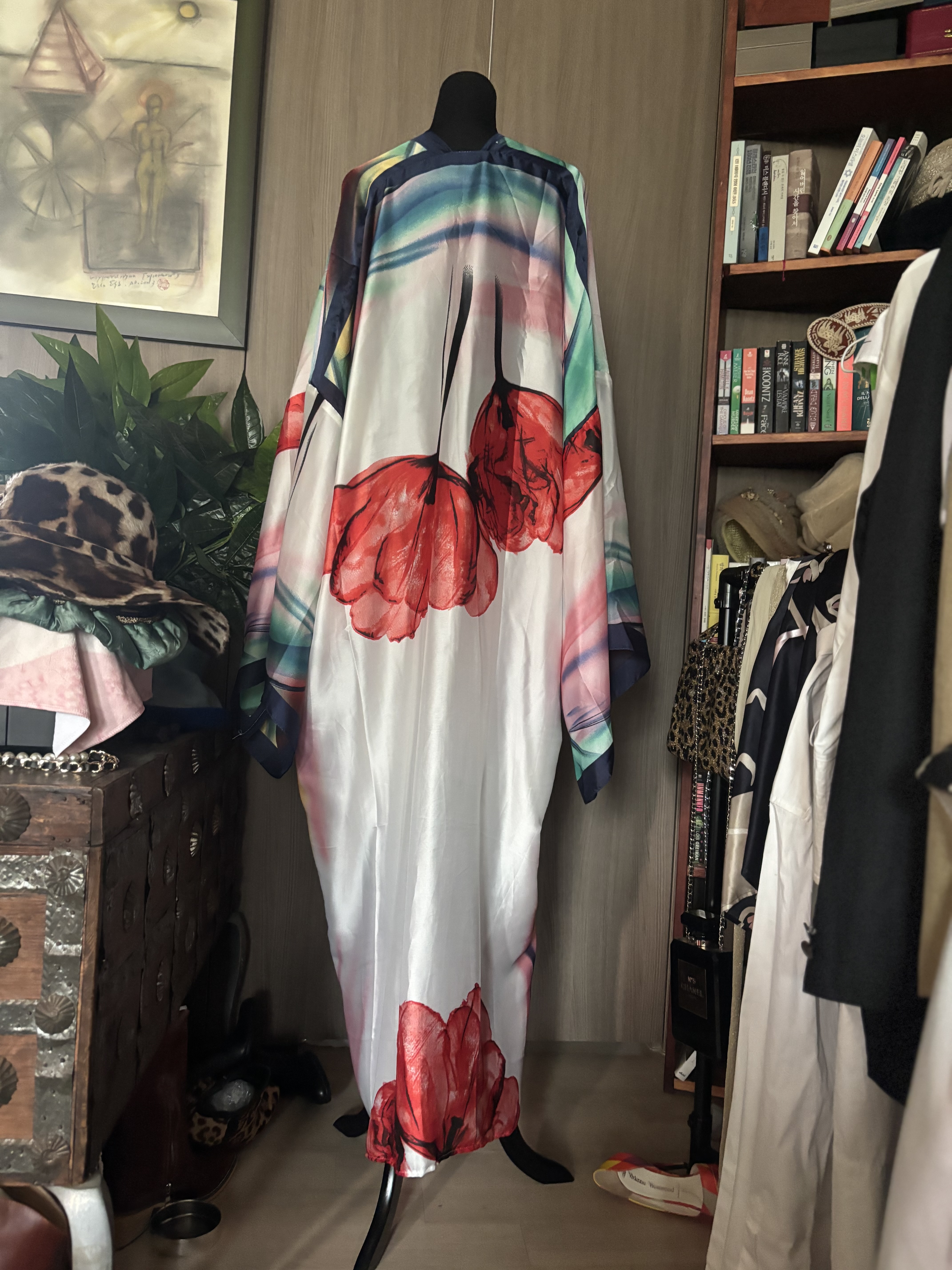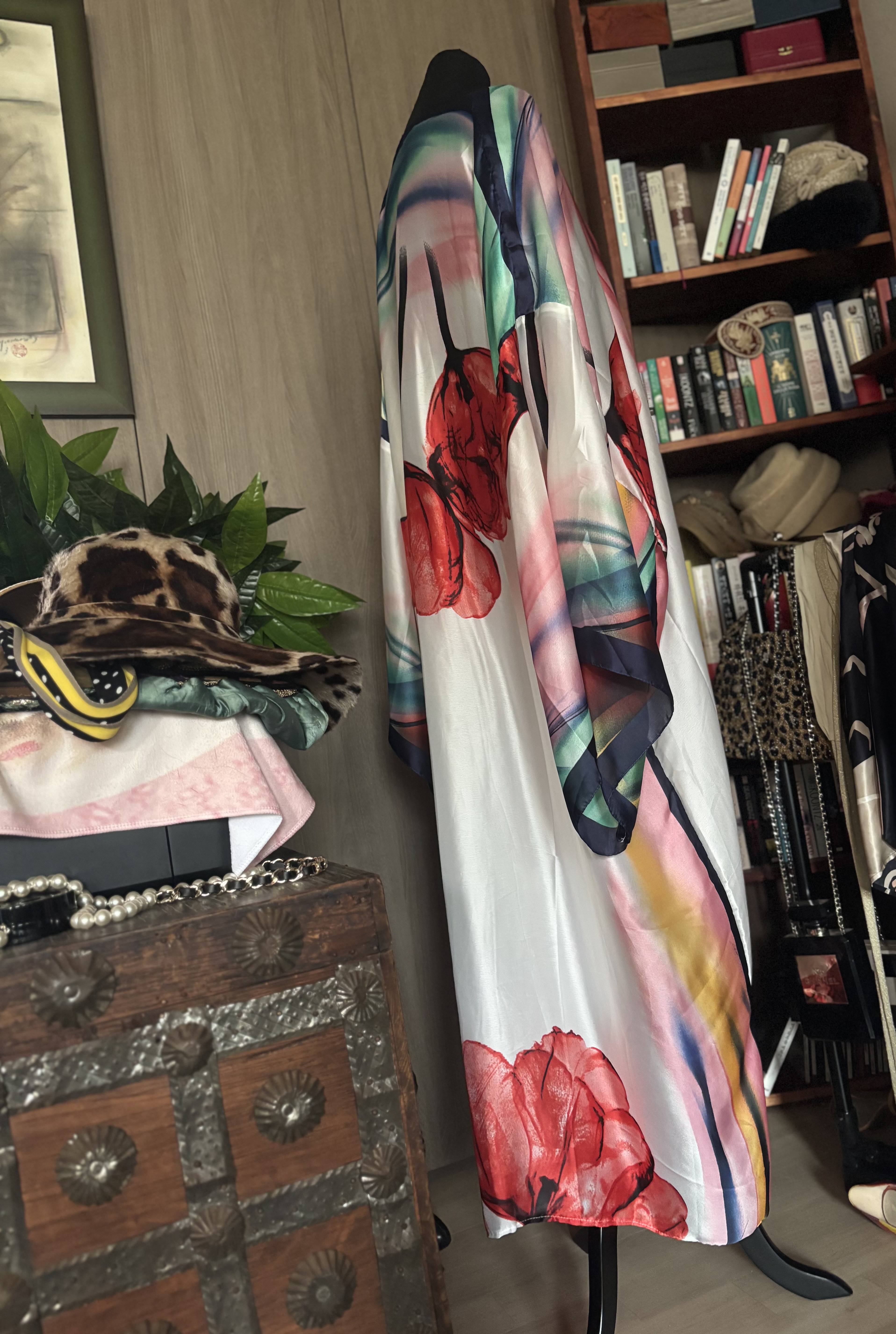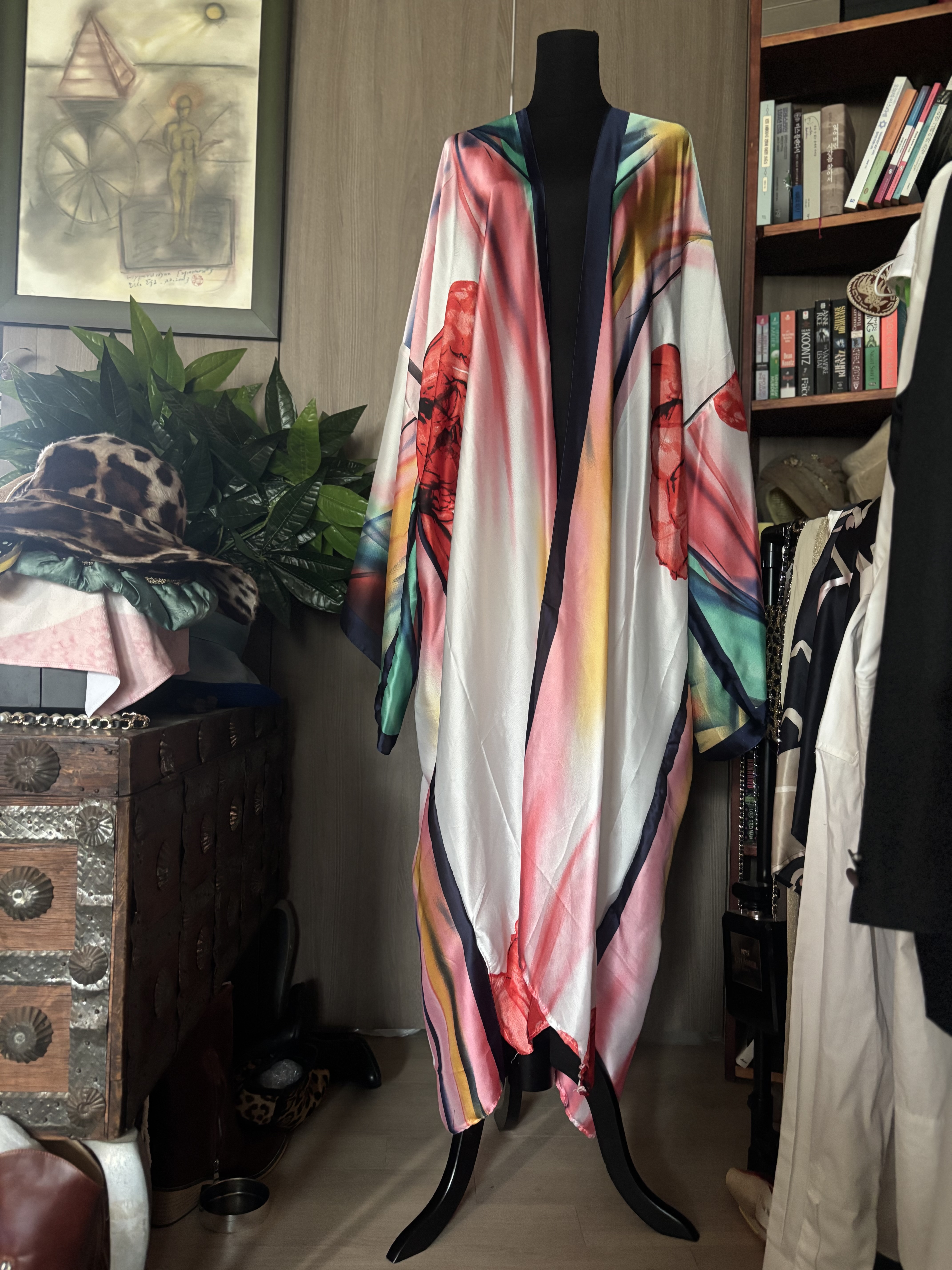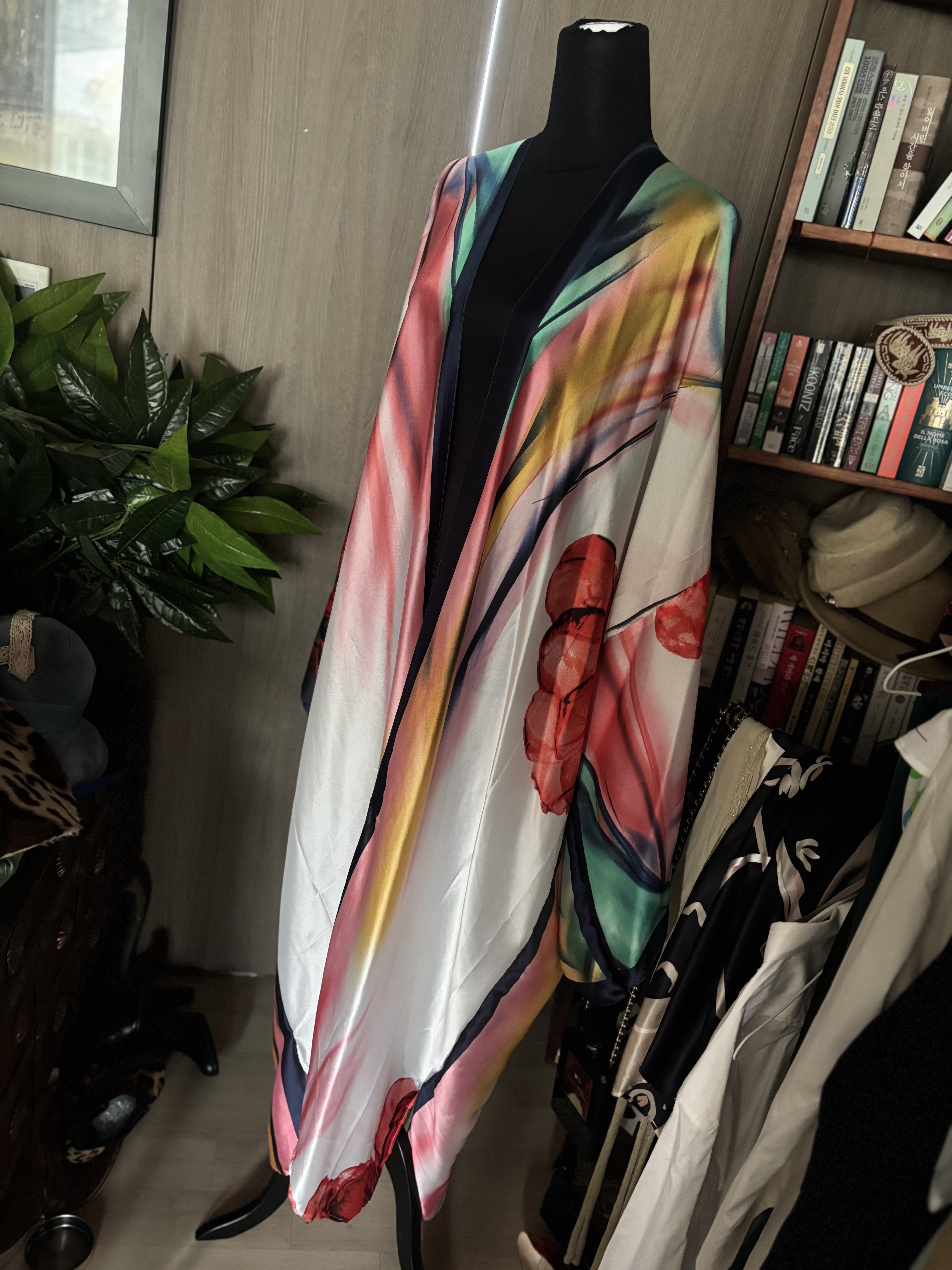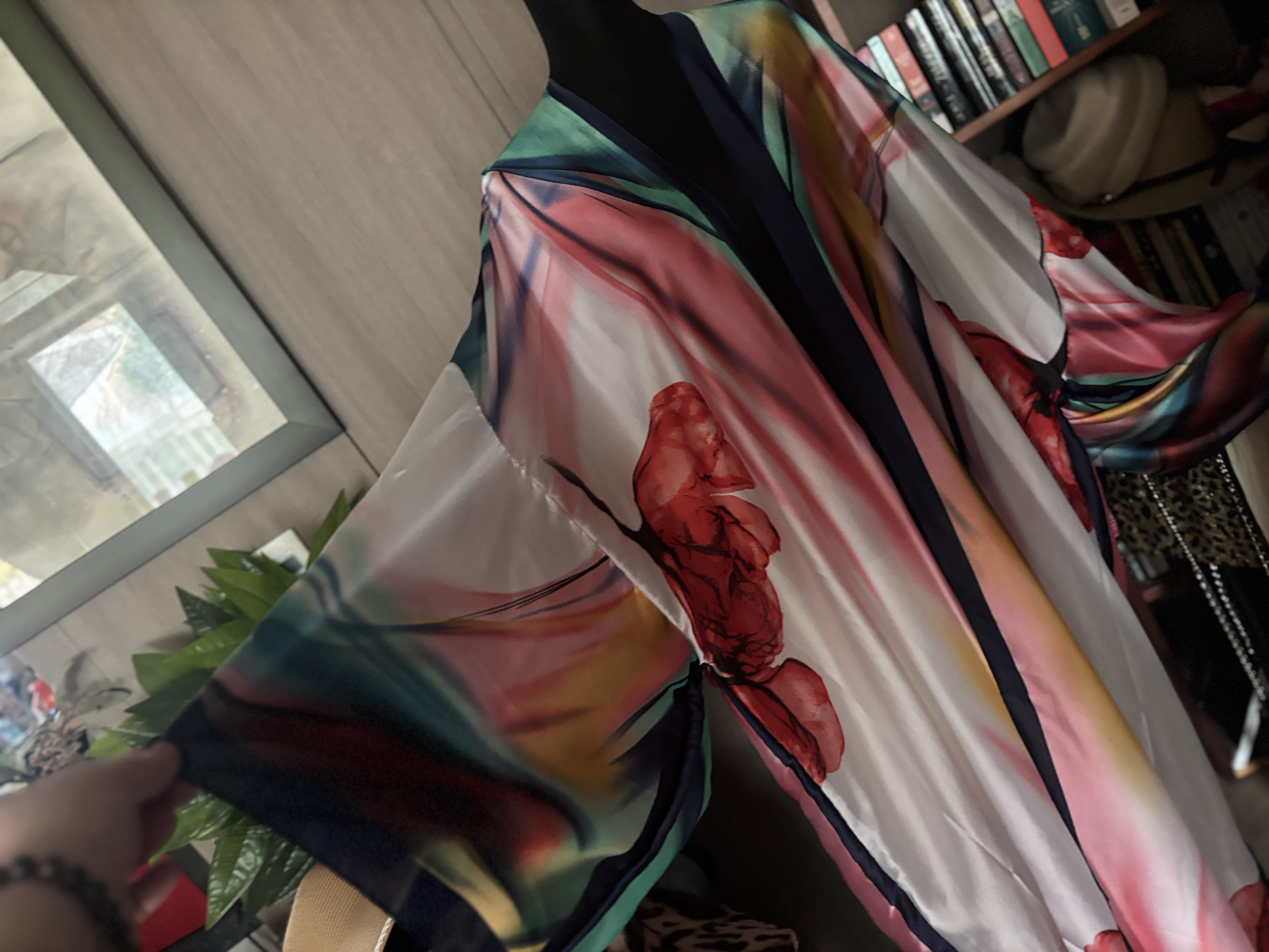 굳이 치수를 재고 할 필요가 없는로브이니 - free size - 키가 작은분들만 피하시면될겁니다 화려한 컬러와 역시 화려한 꽃 들로 표현되어 있어 멋질거예요 여행시 리조트에서 입어 주면 모든이의 시선을 한몸에 받을수 있는 기쁨이 넘치는 옷, 살랑살랑 걸치는 가벼운 기분도 nice ~ 어쩔어쩔 ^^ 실크처럼 부드럽게 가공한 폴리같습니다 좋아요 !