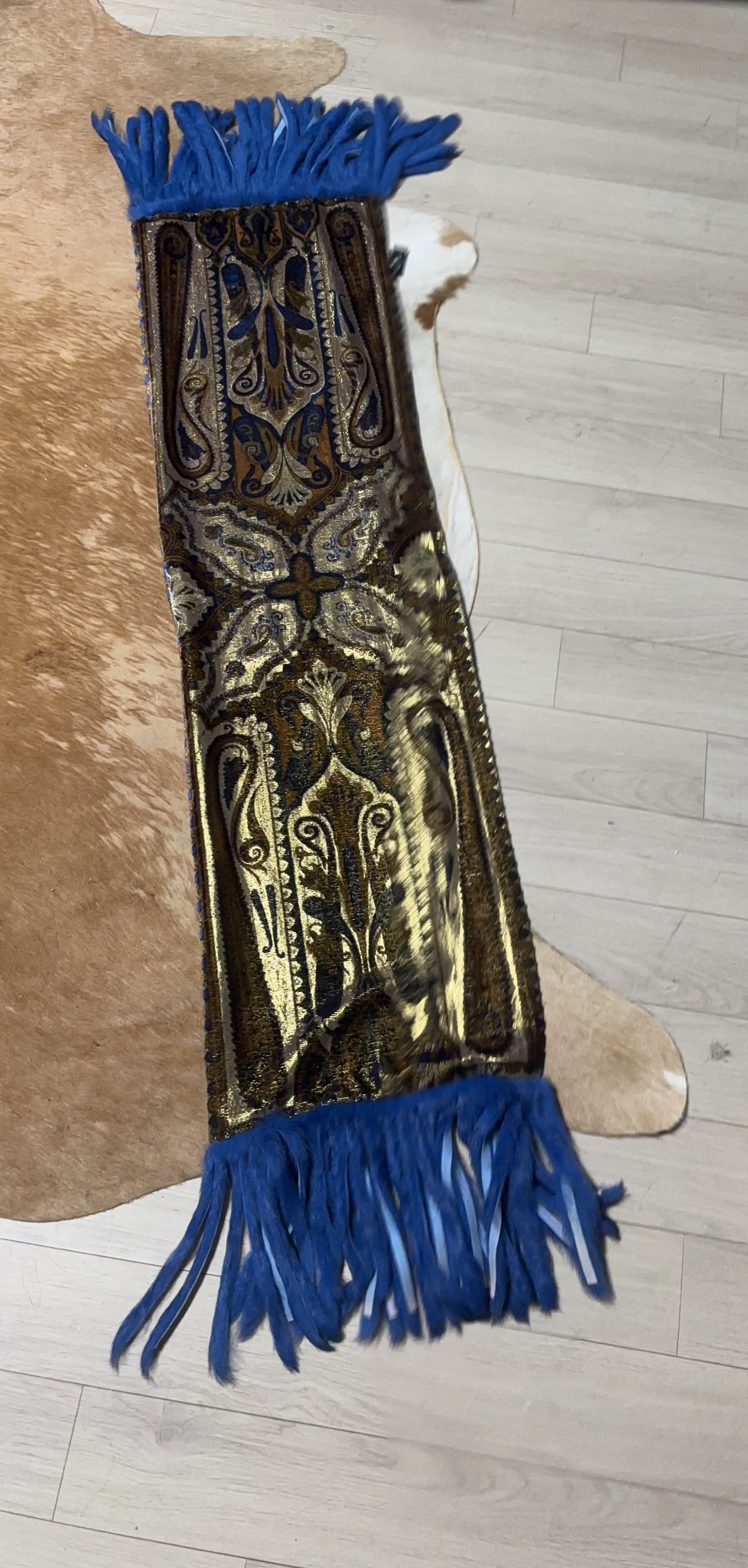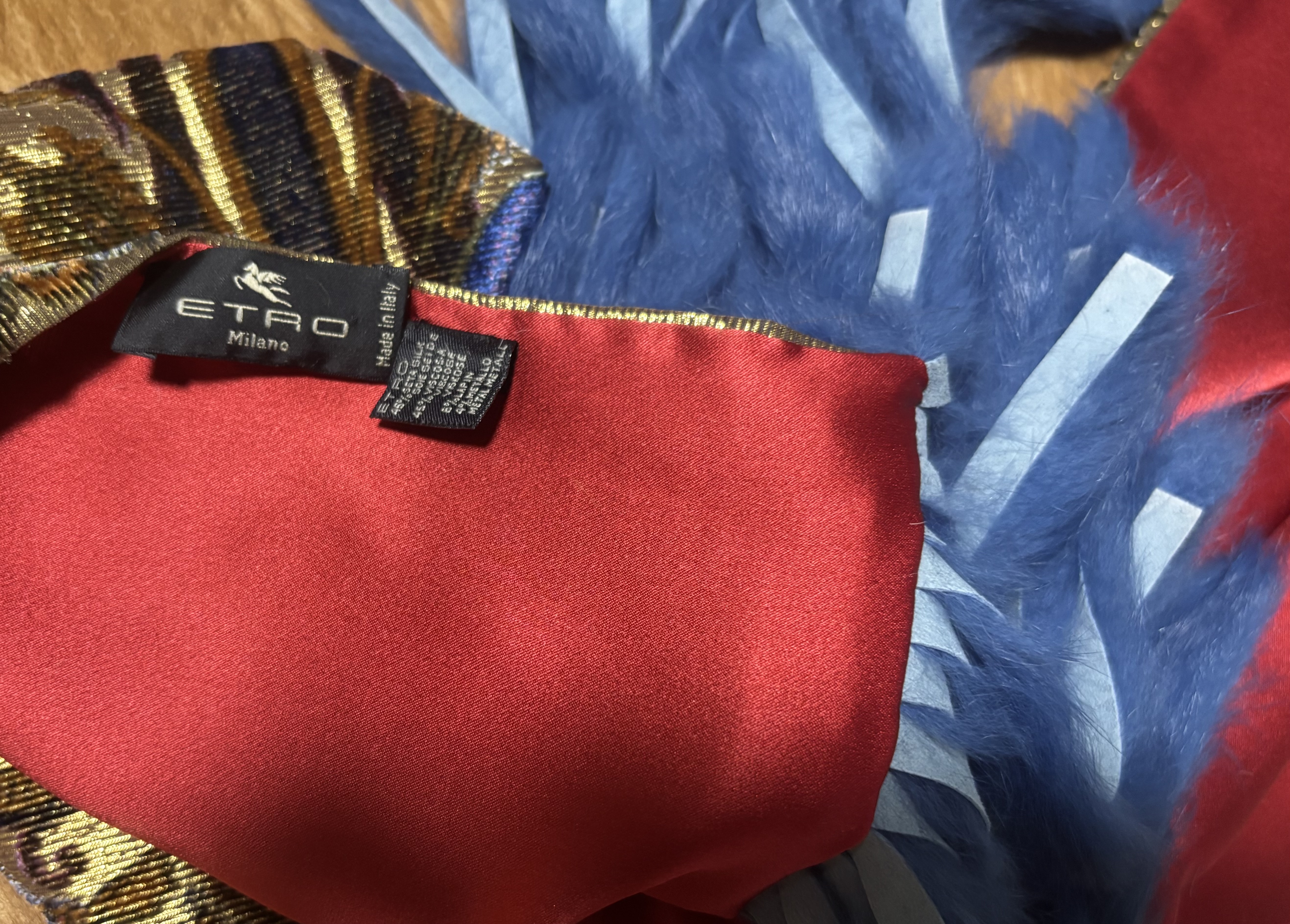 업데이트를 위해 옷을 하나하나 고르려 하다보면 못보던? 기억에 없던 옷들이나 소품들이 요즘 많이 발견됐어요 어 뭐야 이런것도 샀단말이야? 내 자신도 놀라며 끄내었던 ETRO fur fringe scarf. 무슨 테이블 러너인줄 알았어요 테입스트리나요 어디서많이보던 카펫에쓰이는 문양이고요 막상 사진을 찍어보고 나니 blue fur fringe 가 이쁘더라구요 안감은 빨간색으로되어있구요 카펫느낌도 보면볼수록 귀하고 좋았어요 카펫느낌 싫으시면 빨강색으로 바꿔서 묶어주셔도 이쁘구요 고 사진은 안찍었네요 빨간색으로 묶은 사진 곧 올려드릴게요 완전 새것같아서 좋고 에뜨로의 개성이니 이해하시면 보면볼수록 이쁘답니다 귀하신 몸이예요 어디서 이런 스카프를 보겠어요? 저의 장사철학은 다를 어느곳에서도 볼수 없던, 유니끄한 제품들을 보여드리는 취지이니 앞으로도 특이한제품들로 올릴 예정입니다 많이들 오셔서 구경하시고 스트레스라도 풀었으면 하는 제 맘입니다 인스타그램은 queenoflion7 으로 들어오셔서 물건에대한 코멘트도 남겨라도 주세요 그리하여 여러분들과 패션에 관한 대화를 나누고 싶은것이 제 마음입니다 약간의 디스카운트도 해 드리고도 있고요 옷 치수를 재어드린다 하면서 약속을 못지키고 있는점 이해주시고요 꼭 올려드릴것이고 문의를 주셔고 좋습니다