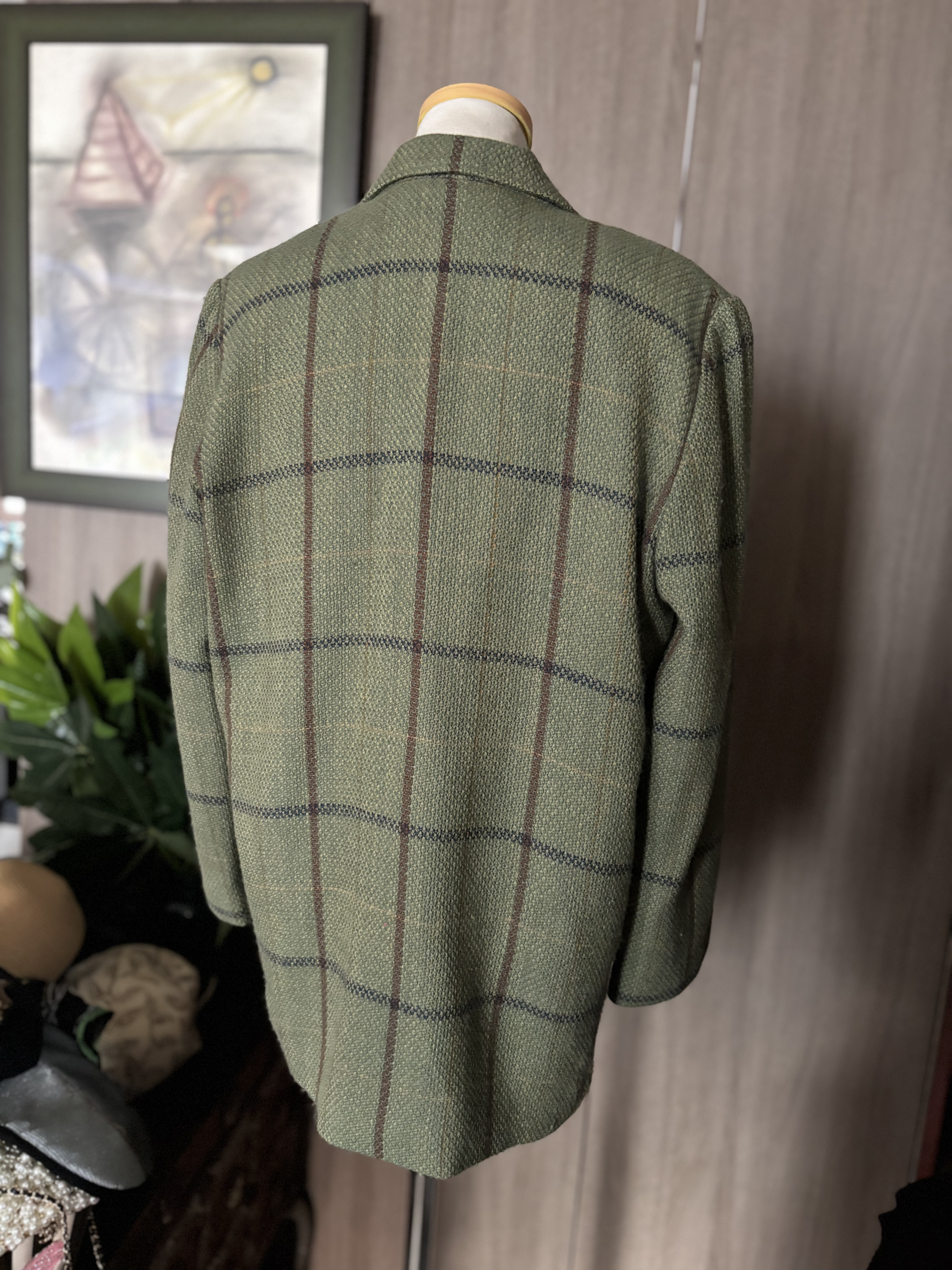 가단 54cm, 총장 74cm  약간의 보플 외엔 - 걷어냈음 - 아무런 이상이 없읍니다 울 재킷임에도 얇고 부드러운 느낌이라 마치 가디건처럼 편히 입을수있어서 좋아요 전혀 두툼한 울과는 거리가 많음 코트 안에 레이어드 해서 컬러와 체크가 살짝 살짝 보이면 근사할겁니다