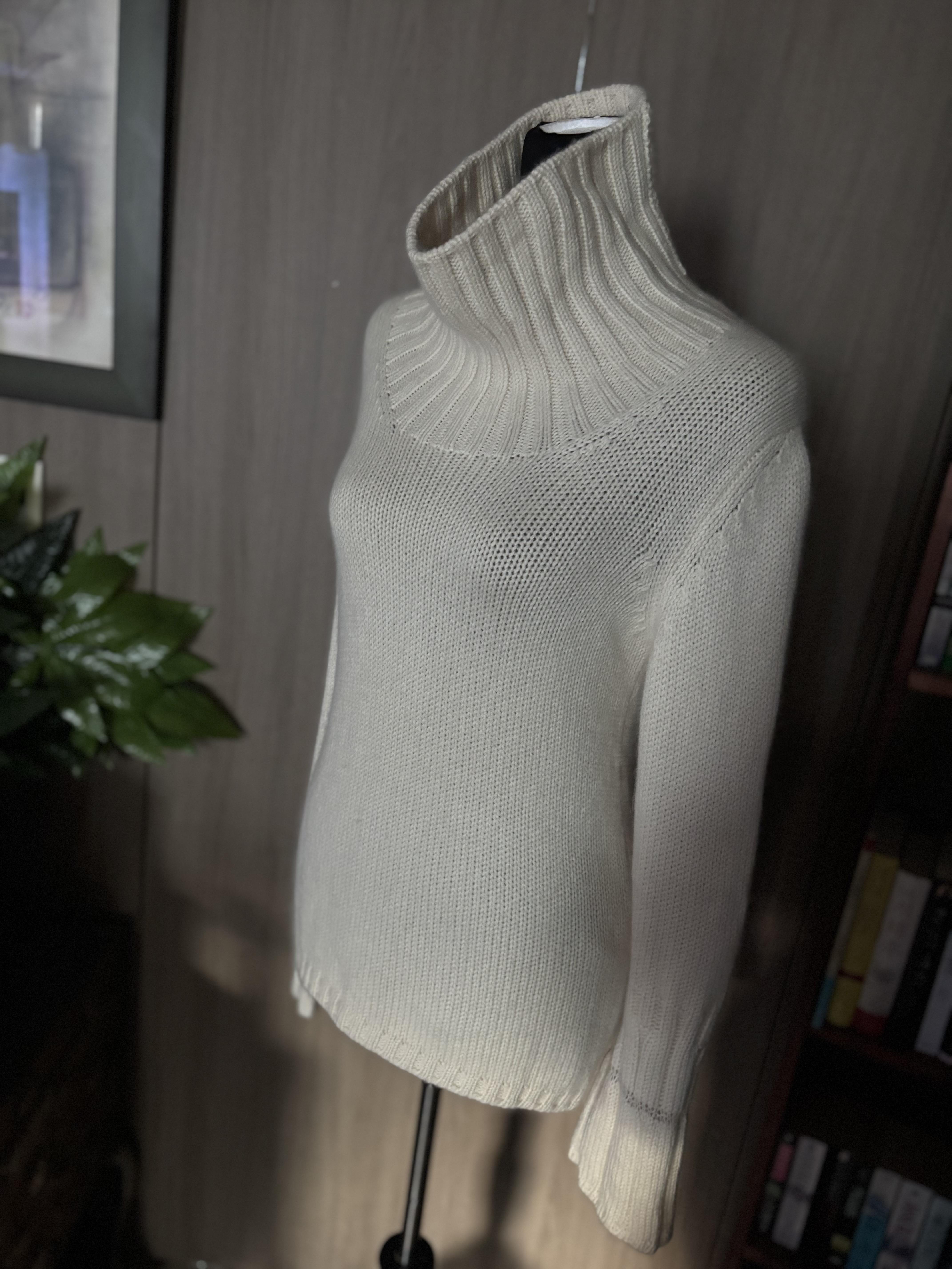 제가 좋아하는 브랜드 Jill Sander! 100% 캐시미어라는 최상의 머티리얼로 만들었습니다 터틀 넥 스타일이고 소매를 보면 점점이 조그만 hole 들이 있고 목, 가슴 부분처럼 주름을 잡아놨습니다 밋밋하지 안죠? 컨디션은 너무나 사랑스러워요 터틀부터의 총 길이 71cm, 소매길이 68cm 터틀길이16cm 가단 41cm 약간의 무게감 있지만 축축 찰랑 흔들리는 니트의 성질이 있습니다