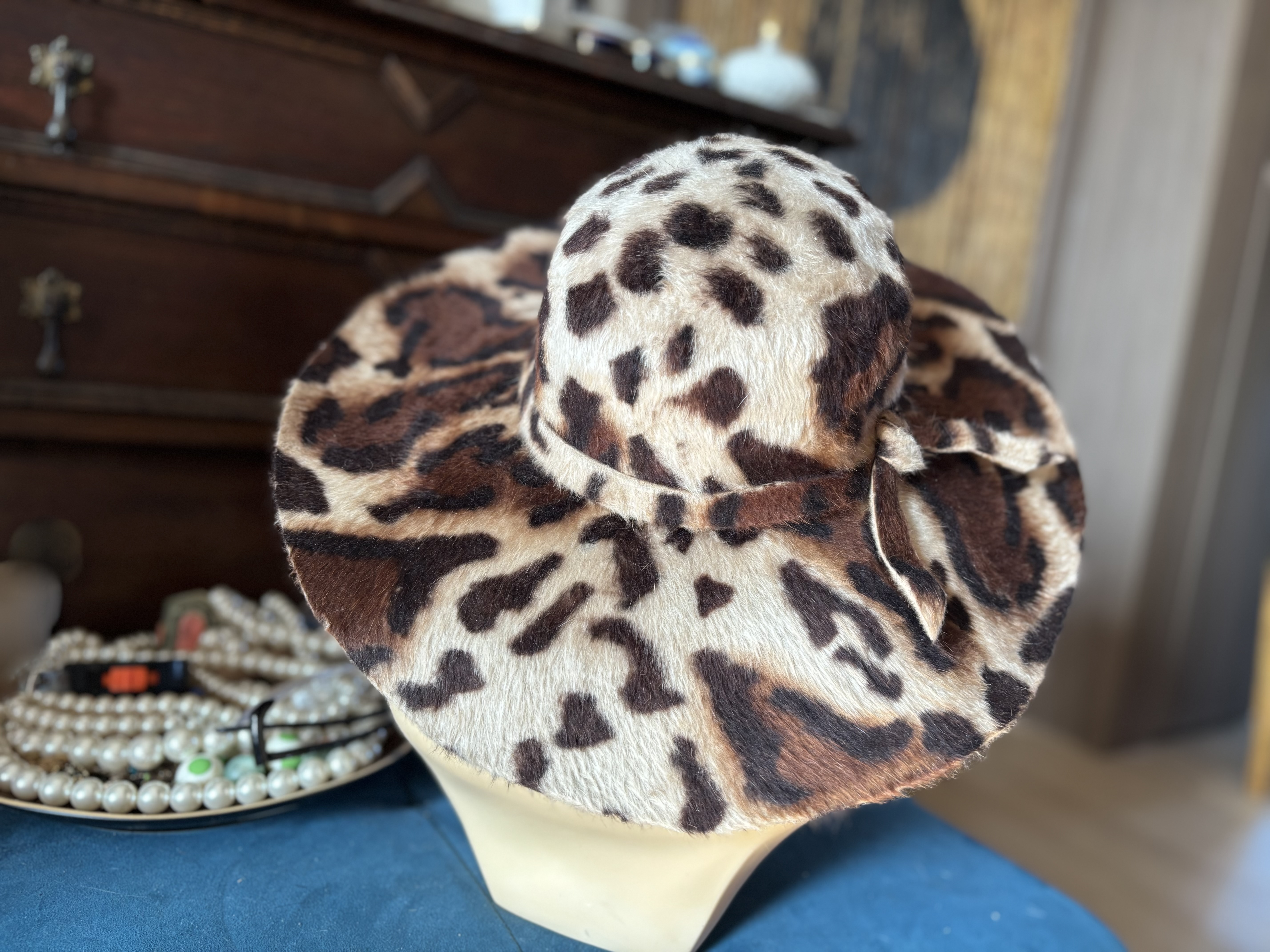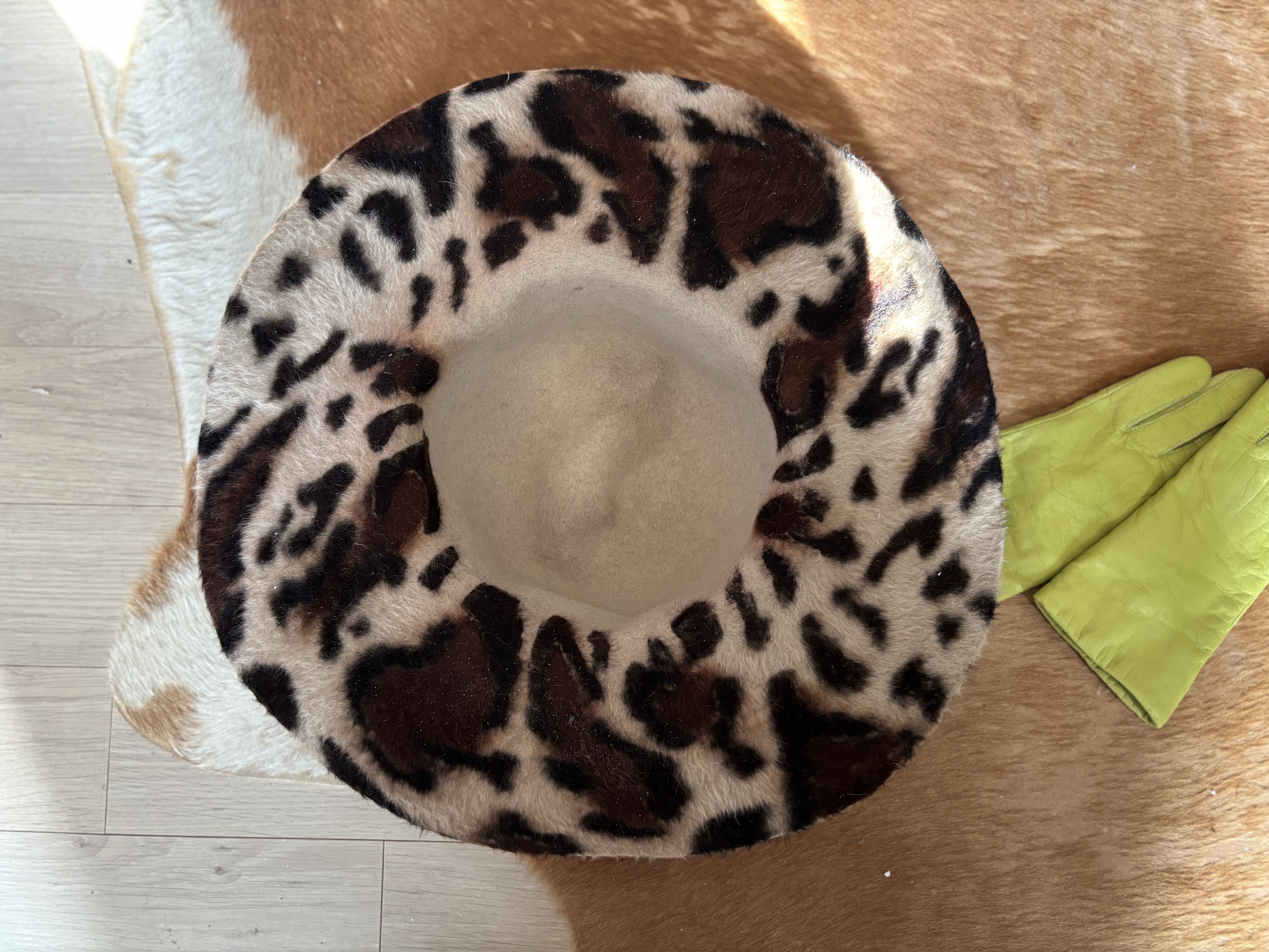 왜 여성들은 호피에 열광하는가!저도 호피를 좋아하는 여성중 한명입니다만 왜 좋은지는 모르겟어요 그냥 이유없이 좋은걸까요 그러기엔 다수 인것같고요 암튼 전 옷, 슈즈 , 백, 악세서리 , 모자, 글로브 등등 장르마다 하나 이상씩은 가지고 있어야 한다는 호피주의로서 제 생각을 찬성하는 바 입니다 비단 여성뿐이 아니라 남성분들도 좋아하실거예요 또한 인테리어에도 많이쓰이지요 그래서 이 모자는 꼭 소장해야 하는 아이템이지요 모자의 털은 에코 퍼 겠지요? 케어레이블이 없어 추측해보는데요 만지면 부드러운 양털같아요 실제 양털일수도 있겠지요 excellent condition ! 머리둘레 55cm, 챙의 너비 12cm .