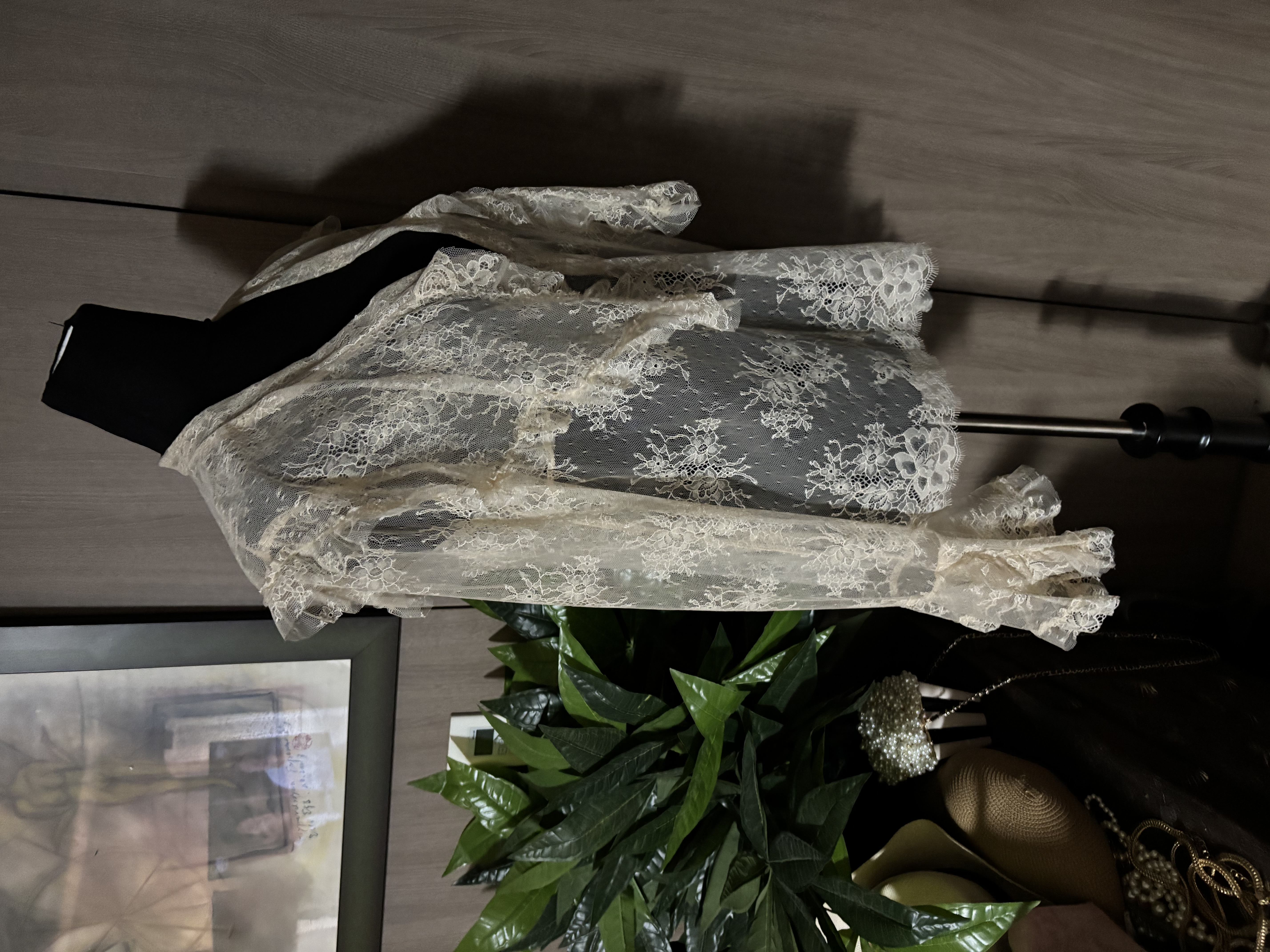 1984년 알베르타 페레티가 설립한 하이 컨템포러리 패션 브랜드입니다 로맨틱 보헤미언 스타일의이탈리아 브랜드 2014 년 합류한 크리에이티브 디렉터인 로렌조 세라피니가 이끌고있는 주목해야 할 브랜드입니다 가단 50cm, 어깨 43cm, 소매 70cm, 총장 64cm 흐물거림없는 딴딴한 레이스 몸판이고 카라와 소매깃만 팔랑팔랑 ~ 노란빛이 도는 찐 아이보리 컬러입니다 이쁘네용 케어 택이 없음