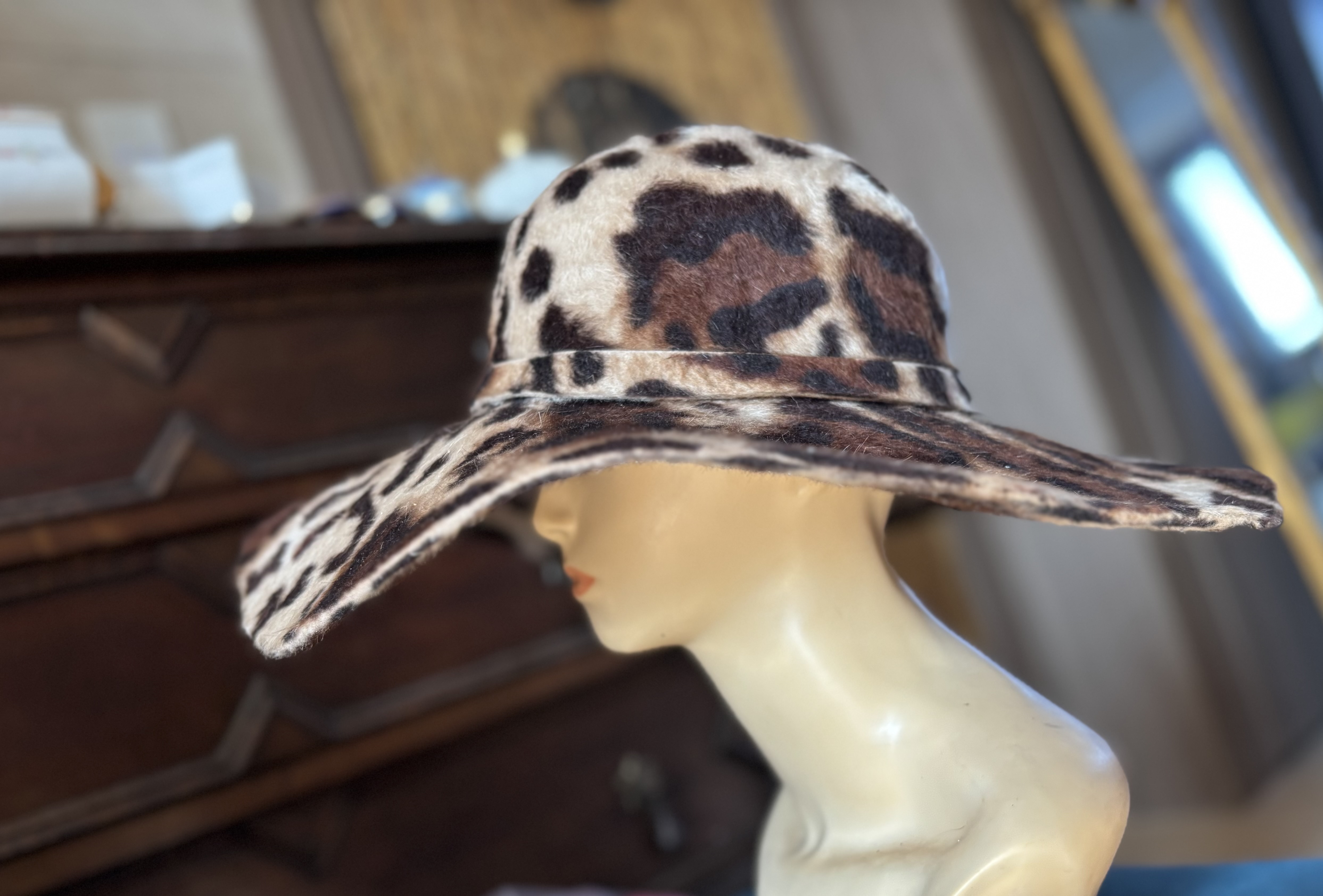 왜 여성들은 호피에 열광하는가!저도 호피를 좋아하는 여성중 한명입니다만 왜 좋은지는 모르겟어요 그냥 이유없이 좋은걸까요 그러기엔 다수 인것같고요 암튼 전 옷, 슈즈 , 백, 악세서리 , 모자, 글로브 등등 장르마다 하나 이상씩은 가지고 있어야 한다는 호피주의로서 제 생각을 찬성하는 바 입니다 비단 여성뿐이 아니라 남성분들도 좋아하실거예요 또한 인테리어에도 많이쓰이지요 그래서 이 모자는 꼭 소장해야 하는 아이템이지요 모자의 털은 에코 퍼 겠지요? 케어레이블이 없어 추측해보는데요 만지면 부드러운 양털같아요 실제 양털일수도 있겠지요 excellent condition ! 머리둘레 55cm, 챙의 너비 12cm .