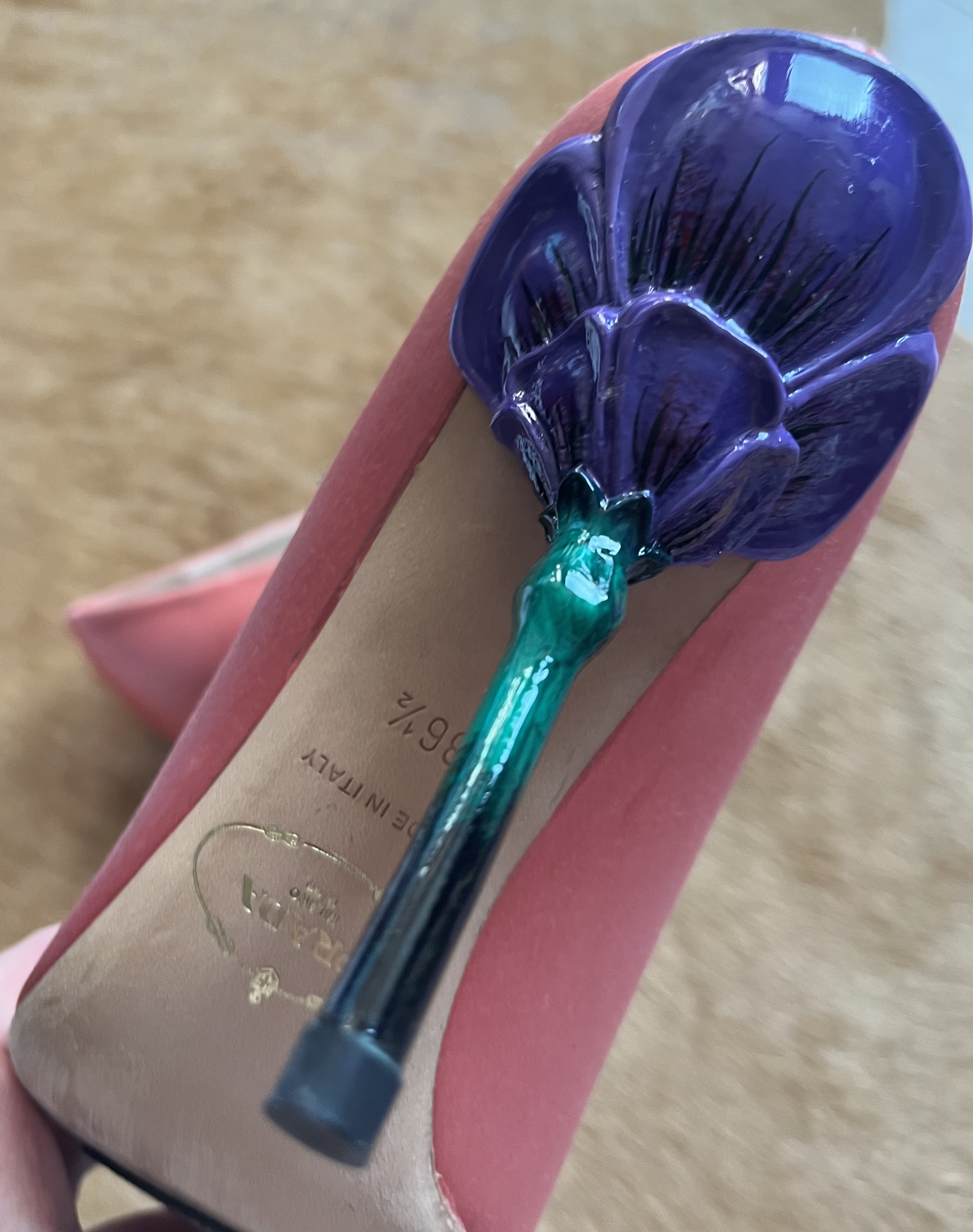 아찔한 킬힐! 한때 이런 10cm 스파이크 힐이 유행했었죠 저도 컬러도 이쁘고 굽도 특이하쟈나요? 덥석 구매하고 한번도 안신었다는거 아닙니까 ,, 지금은 신으려고해도 무섭고 균형도 안잡히고 ,, 발도 너무 아파요 나이가 드니까 그렇네요 저도 20때엔 이런 힐을 신고 뛰어다녀도 발이 하나도 아픈지 몰랐어요 힐을 좋아해서 거의 외출시 키도 더 커보이고 마지막점검으로 힐을 신어줘야 몸매가 살아나고 멋져보이죠 이땐 단화는 쳐다도 안봤을 때니까요 ‘ 젊음 ’ 정말 모든것을 커버해 주는 축복받은 시기이니 자신의 젊음을 허비하지 않고 감사하면서 즐기시길 바랍니다 시간이 흘르고 나서 알았어요 저도 어릴땐 이 축복을 몰라요 시간이 지나서 깨닫게 되요 그래서 그 시간이 인생에서 짧지만 화양연화였고 늙으면 죽어약되 라고말씀하시는 어른들이 이해가 가기 시작했어요 호호호. 참 이뻐요 36 반 이니까 235~ 볼 좁은 240 좋겠군요! 꽃신같아요 ,,,